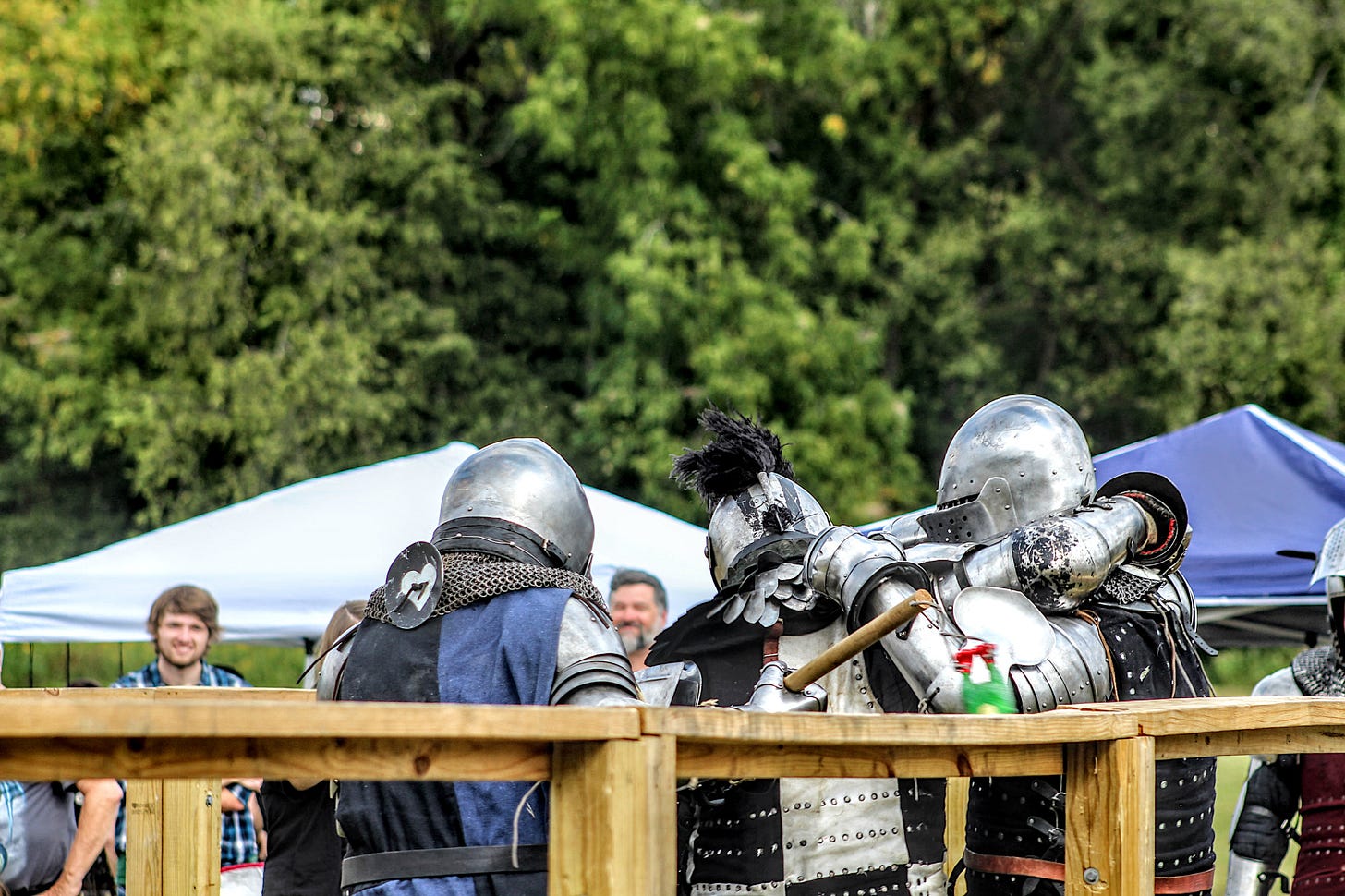 “It is not the weapon you are given, but how you choose to wield it,” cried a voice on the microphone as three iron-clad knights engaged in an epic tournament. The competition was bordered by cheers, laughter, and applause as members of The Iron Alliance battled with a pillow, frying pan, and fishing rod. My nephew and nieces practically jumped with excitement as the pillow wielding knight took down his opponents. Other onlookers relaxed in lawn chairs sipping wine or mead.
