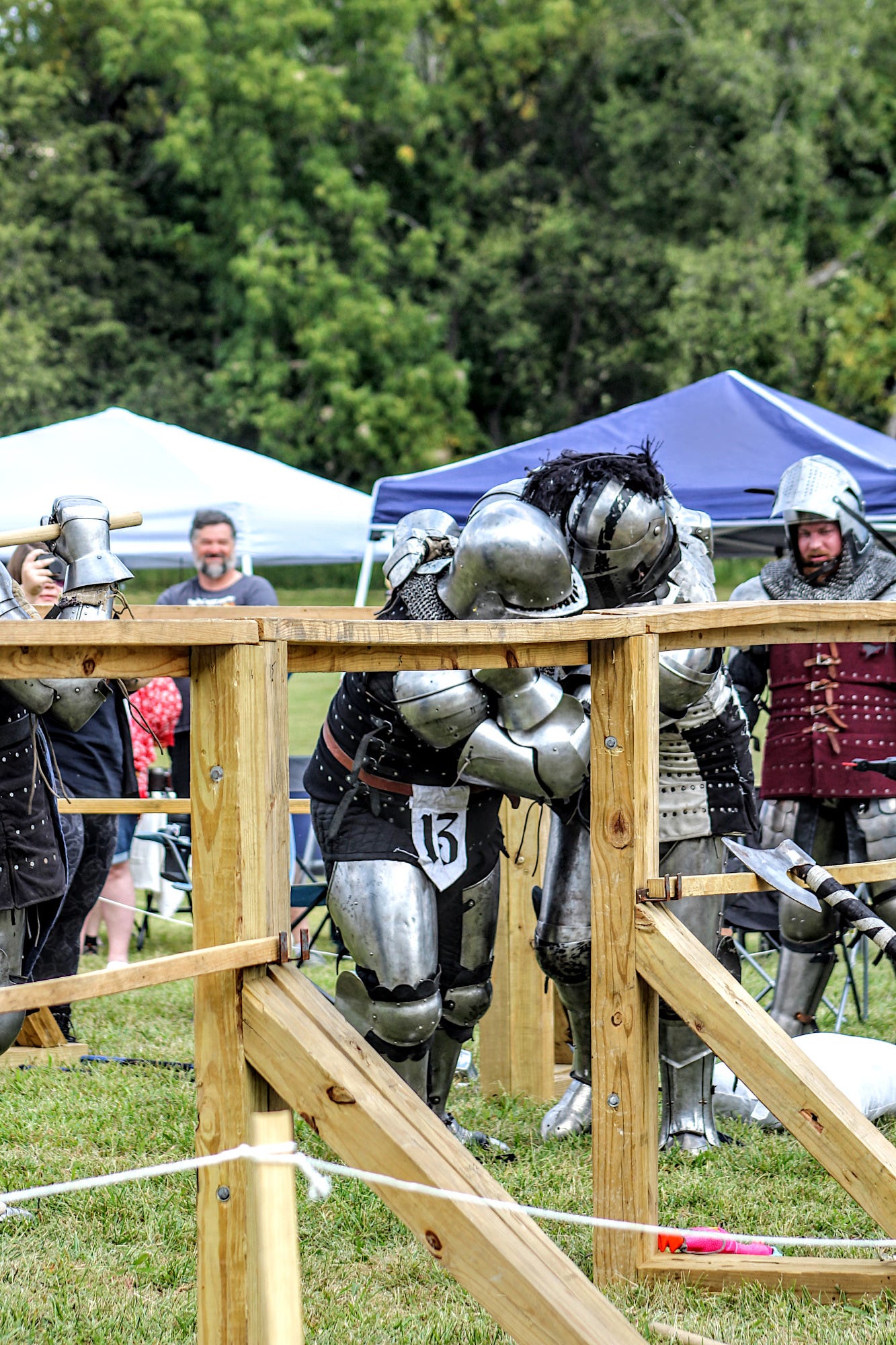 “It is not the weapon you are given, but how you choose to wield it,” cried a voice on the microphone as three iron-clad knights engaged in an epic tournament. The competition was bordered by cheers, laughter, and applause as members of The Iron Alliance battled with a pillow, frying pan, and fishing rod. My nephew and nieces practically jumped with excitement as the pillow wielding knight took down his opponents. Other onlookers relaxed in lawn chairs sipping wine or mead.