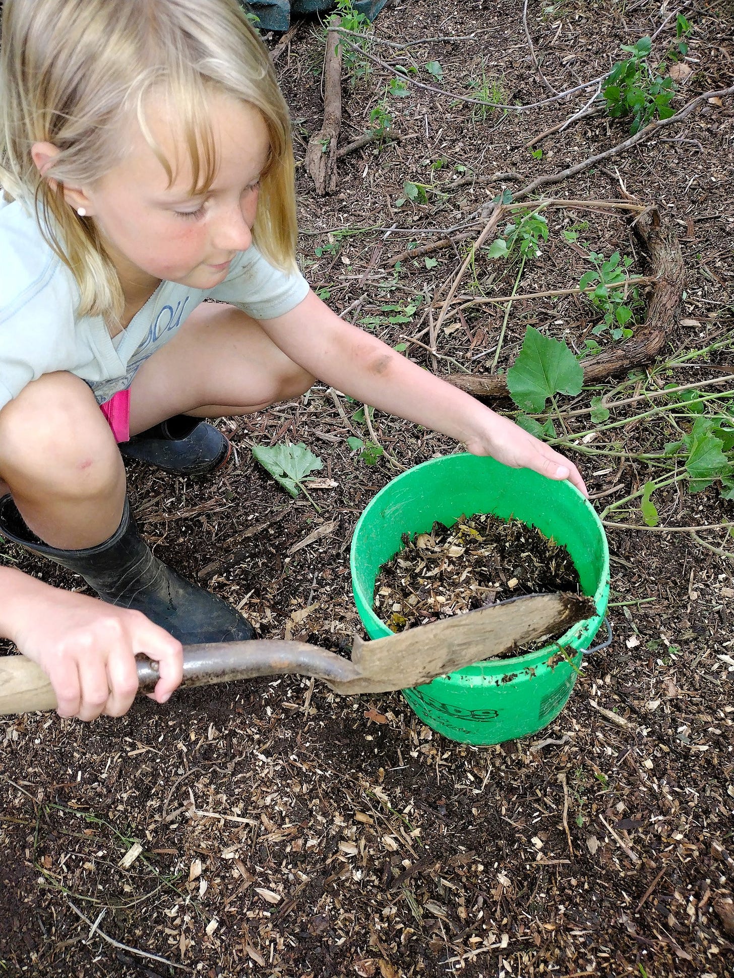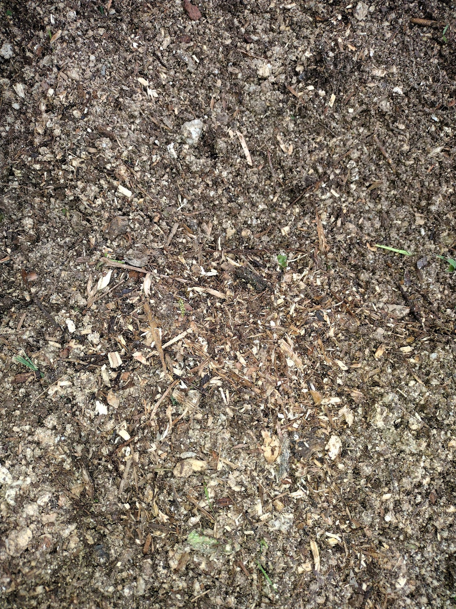 The leaf compost we got from the woods. We chose it for its water holding capacity. The wood chips we already had on hand from shredding brush. We chose them for moisture regulation. It was a stretch to source sand from our homestead, but we ended up using some sand- like gravel dust left over from when our well was dug. Sand is great for drainage. Lastly, we found the pea gravel in our gravel bed which was left over from when our driveway was put in. Pea gravel helps with aeration.
