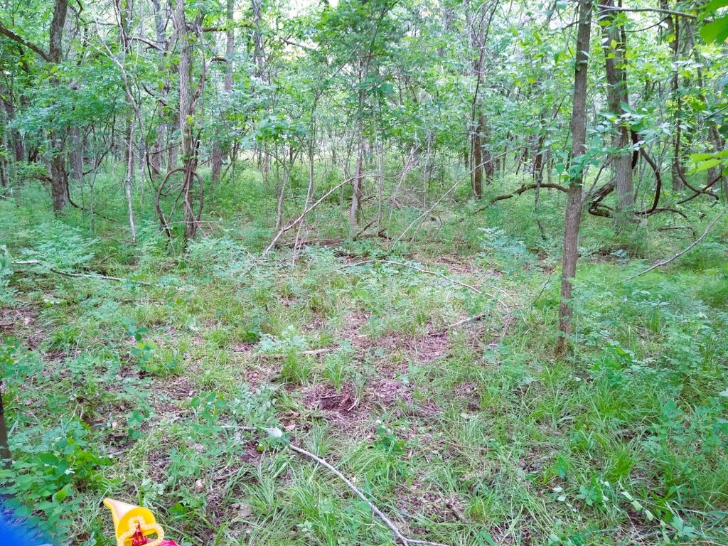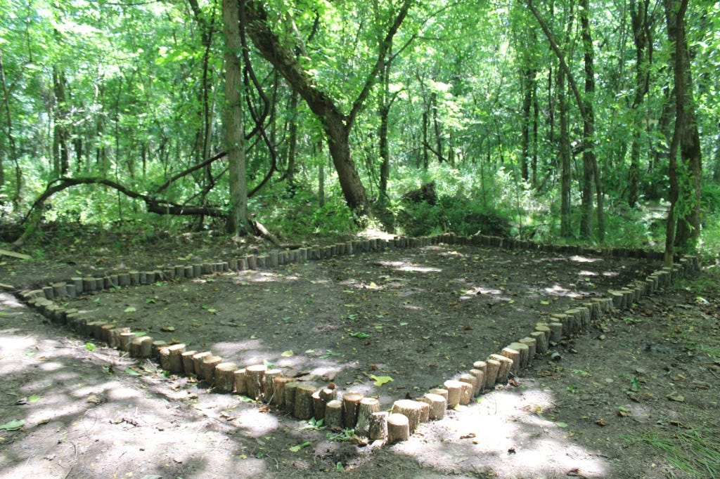 We started working on our campsite early this summer. We chose a wooded area up behind our spring, so we would have shade and privacy, but also easy access to the water.
