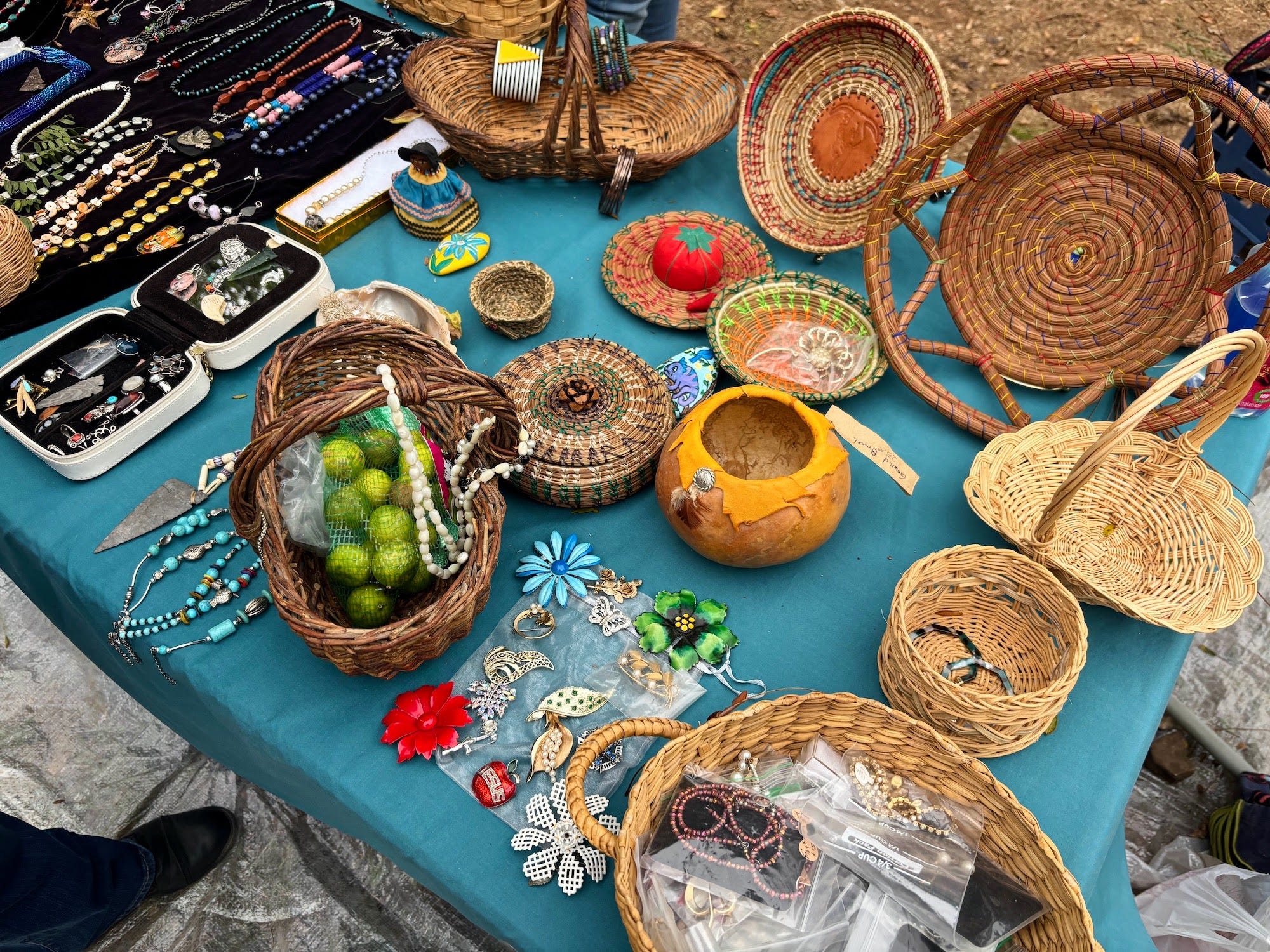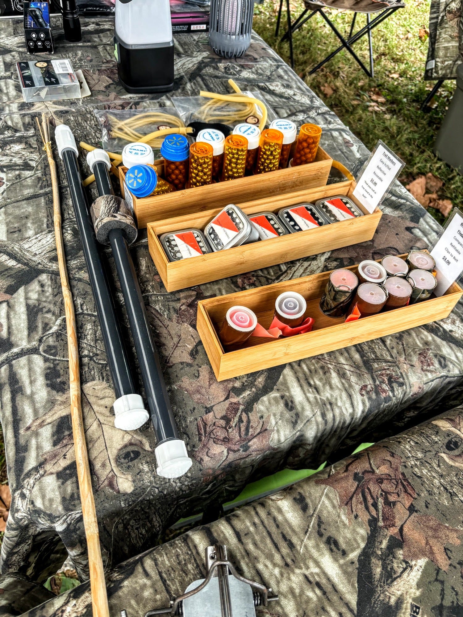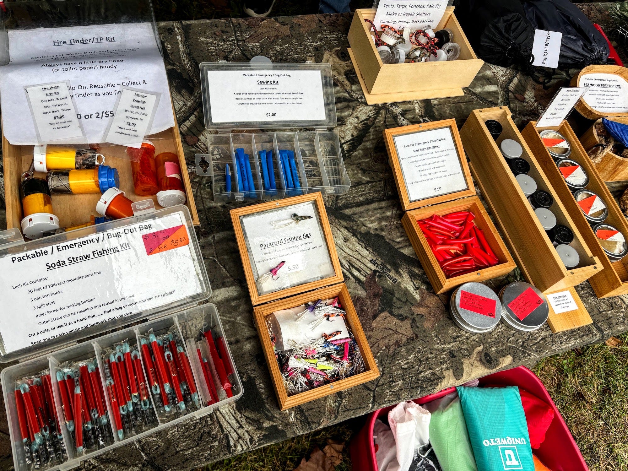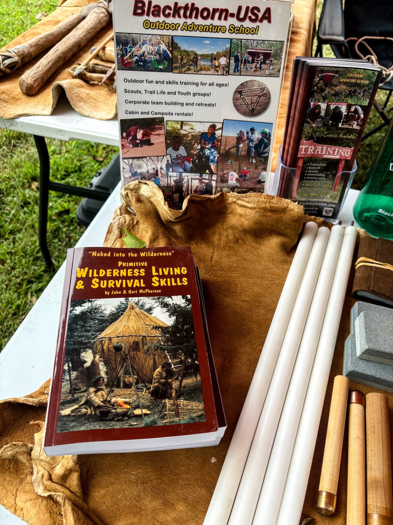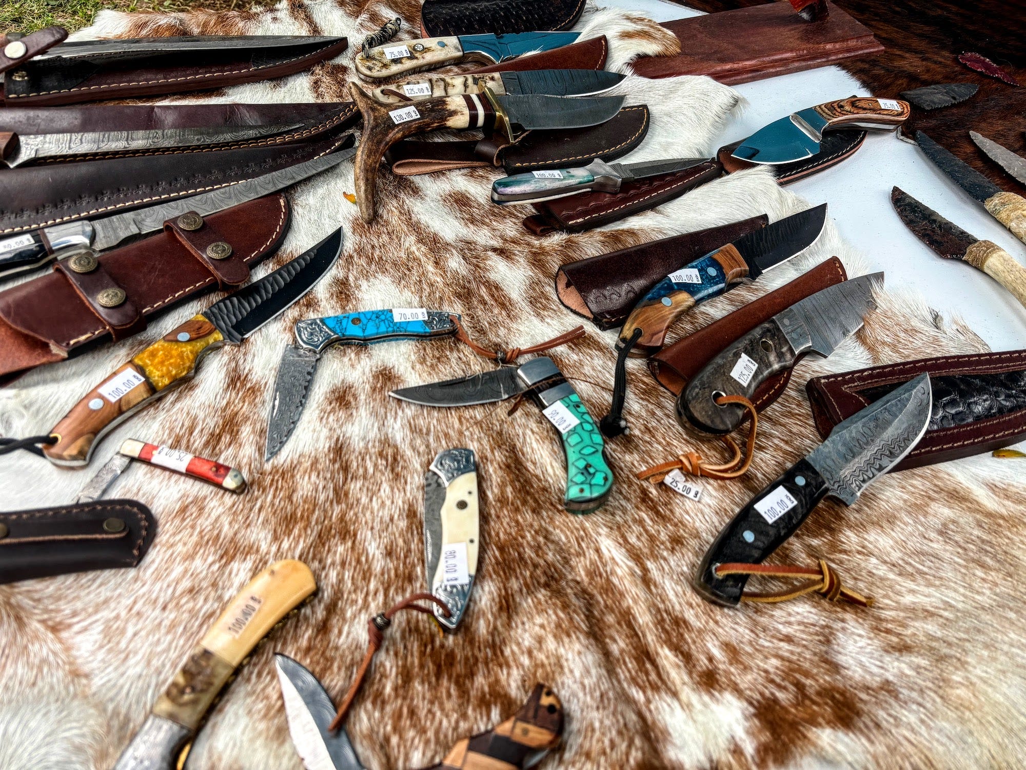 Like last year, there was an impressive array of primitive skills being displayed. We walked past booths where people were learning to carve bows out of branches and shape arrow heads out of flint. Various artists also displayed unique jewelry, decor, leatherwork, and knives.