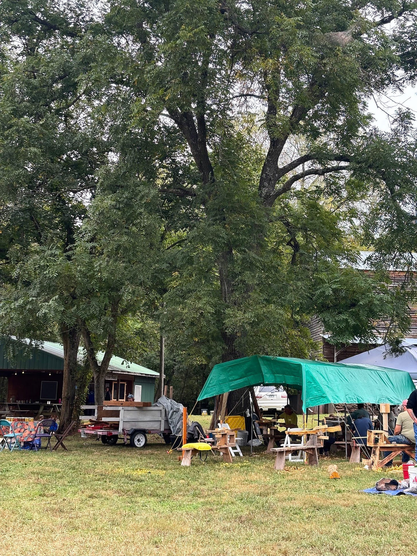 As we were making our rounds, we met Don Brink -- one of the co-founders of the gathering. I read about Don and Bo Brown (the other founder) when I first heard about the knap-in, so it was fun to finally put a face to the name. Don talked to us about the knap-in and how they have held it every year (except for 2020) since the late 90s. It was fun hearing first hand how Don got started -- going from a retired musician to a wilderness expert. His knowledge base doesn't come from a classroom. Rather, it stems from a passion that drove wilderness hobbies throughout his life. Don and the other craftsmen at the knap-in are reminders that for most of human history, skills weren't learned in a classroom -- they passed organically from one person to another.