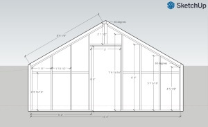 First, I drew up a plan with Sketchup, using our saved measurements from our rafter build. I knew these measurements would be close but not perfect. We would take better measurements and adjust on site.