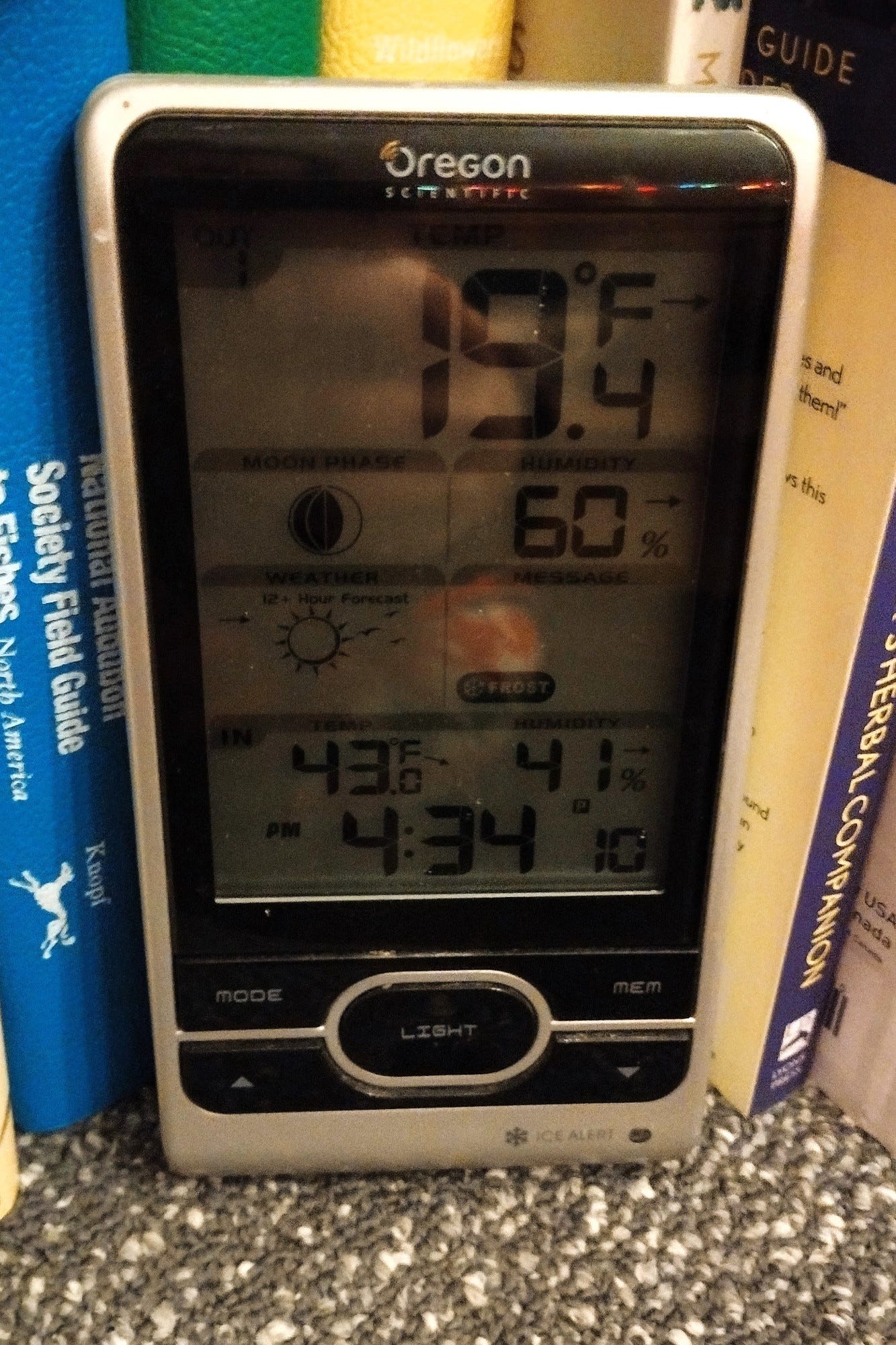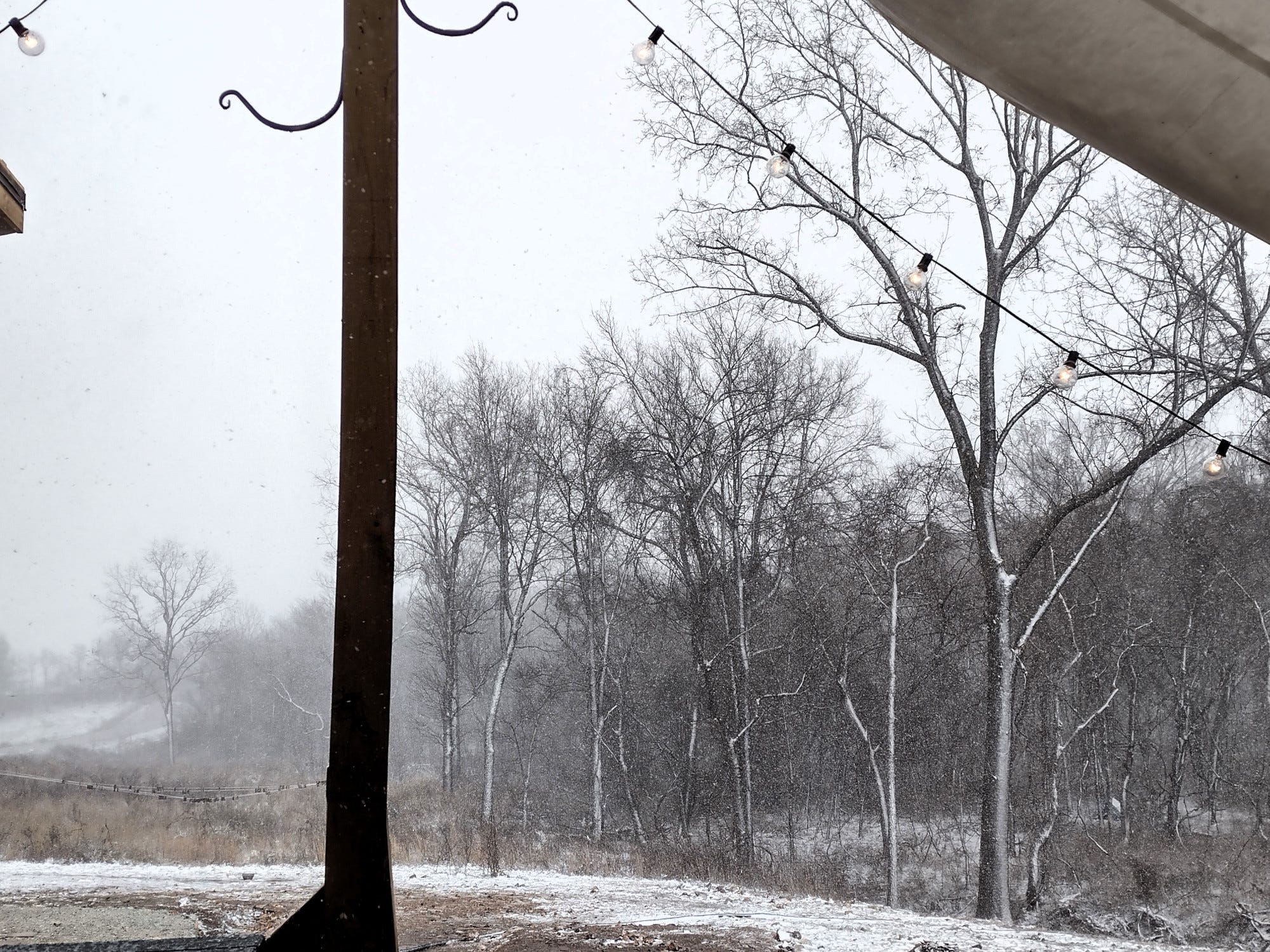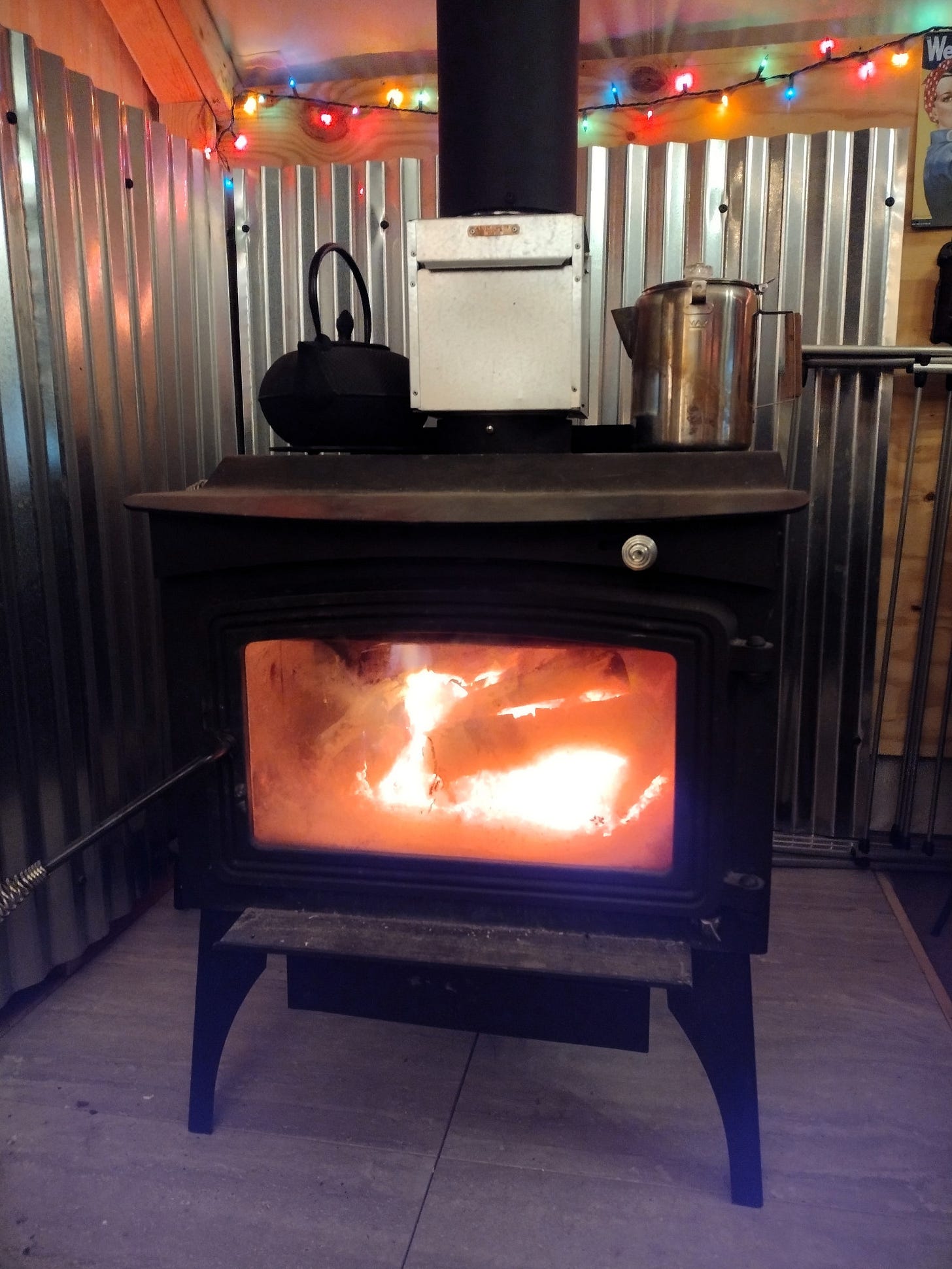 Even with all our efforts, the wind was so bad on Friday, we struggled to keep the tent warm. After a loud night of thunder storms (in January, of all things), the temps started dropping Friday morning. We were under a wind advisory all day, and 28 mile gusts felt more like sustained winds as it pelted the tent all day. When it dipped down to the low-forties inside, we scrambled to seal the windows better. As I said last week, the windows in our tent only close with Velcro along the tops. When it is windy, air leaks through and sometimes blows the windows open. On Friday, we added more plastic and over the west facing window, some plywood, to hopefully minimize our heat loss. Our efforts paid off, though it still wasn't as warm as we would like. We survived until the wind improved, but we will be researching how to make windy days more bearable.
