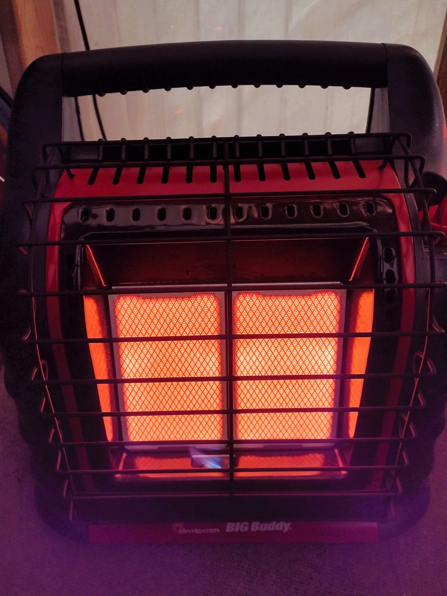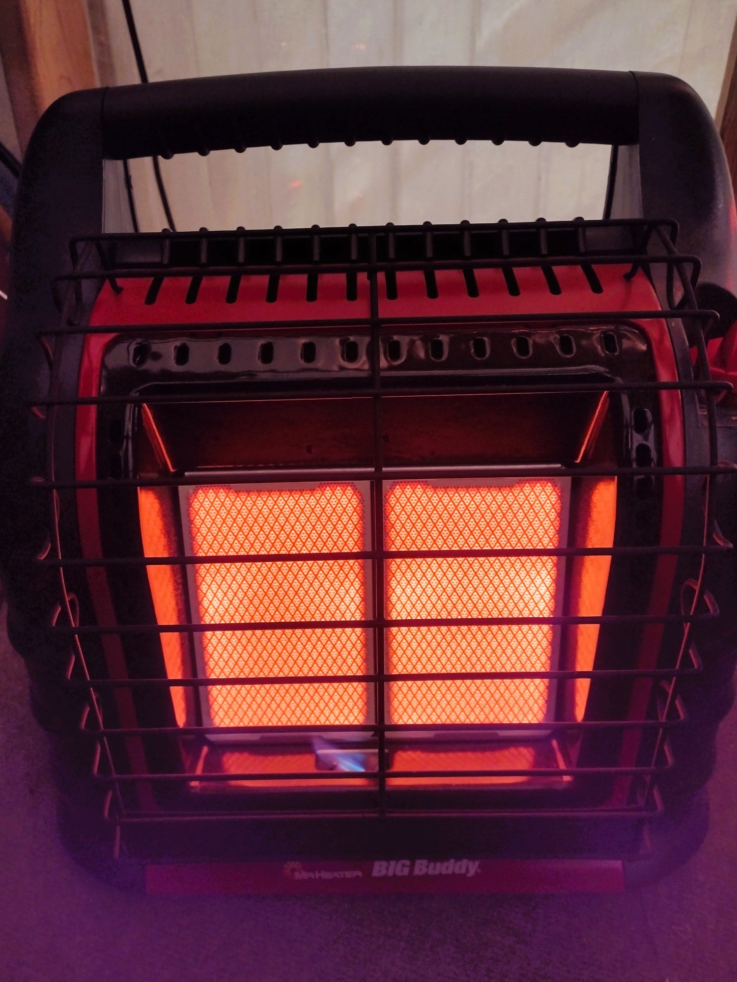 We had already discussed bringing our jobsite propane heater into the tent if the woodstove couldn't keep up. So, Sunday morning, Levi and Dad figured out how to run a propane hose inside, leaving the tank safely outside. Our Mr. Heater Big Buddy did the trick -- it felt like a small miracle, as the temps started climbing immediately. We have maintained daily inside temps in the 60s ever since, no matter how cold it has gotten outside. At night, we just use our woodstove, as we are always very warm under our down duvets.