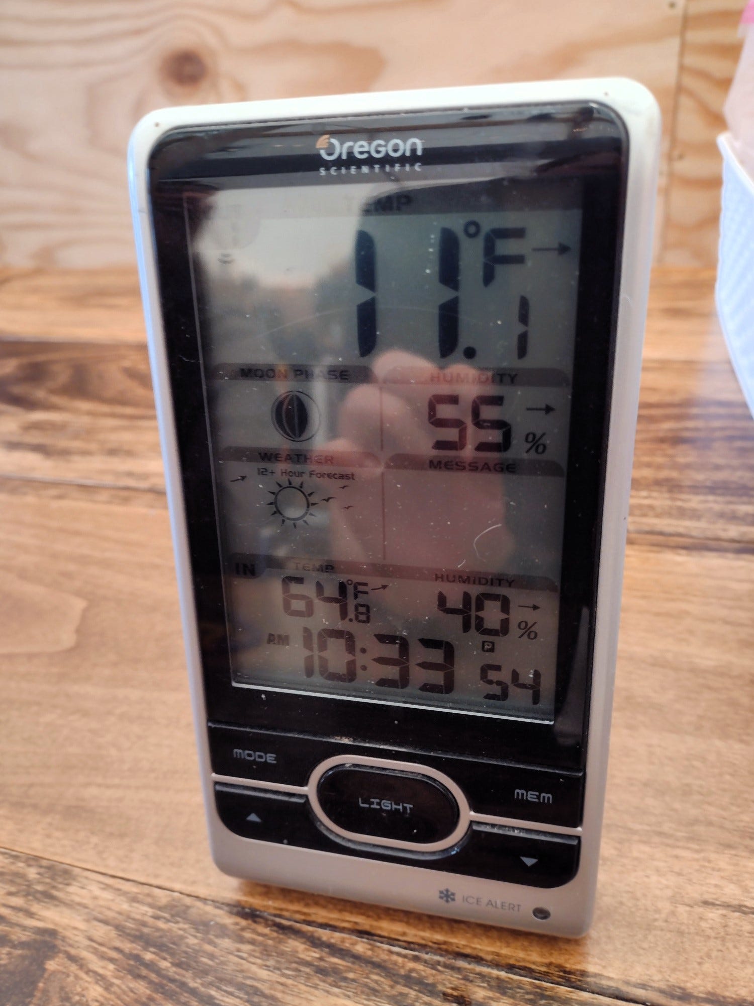 The experience made us all think about generations gone by, how my grandma only washed her hair once a week and would at times go days between showering if she didn't feel dirty. We discussed the real difficulty of heating enough water on the woodstove for so many people to bathe in -- something we had to do when I was growing up in north Idaho at times, as yearly winter power outages could last weeks. Back then, at least we had a bathtub we could get into and pour water over ourselves. Here, we lack the space and privacy to make such bathing very feasible -- though if we had gone much longer than a week, we would have found a way. Thank God (and I mean that honestly), we finally had water for a couple hours on Wednesday and a few hours on Thursday. We got to shower both days as well as wash almost all of our laundry before the temps turned cold again on Friday.