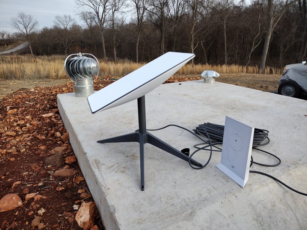 For our test run, we set up our Starlink outside on top of our storm shelter. Everything appeared to start right up, and my brother was able to connect his laptop to the internet. He wanted to do a video chat with family back in town in order to do a speed test. It should have been a simple, less-than-five-minute process, but we didn't figure on how we had left the least tech-savvy family members in town. Both Bonnie-Jean and my sister-in-law Erin have laptops and have used them to video chat before. Last weekend, though, it proved to be more challenging than expected. Jeremiah and I spent more than an hour doing tech support trying to get their laptop cameras up and running. Finally, we figured it out, and the call went through. I don't really understand internet speeds, but my brother was satisfied. He said the speeds weren't great, but they were stable.