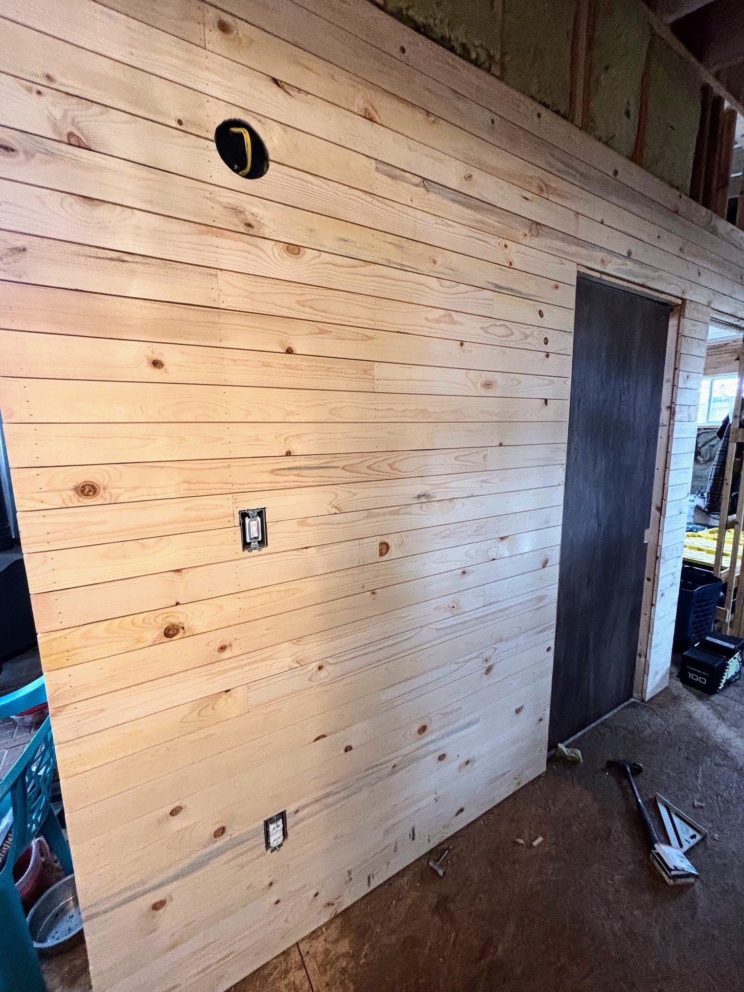It was a productive week for our homestead. We sisters made solid progress siding the half-bath and adjascent hallway. It always feels especially good to make visible progress. And there was plenty to see this week.