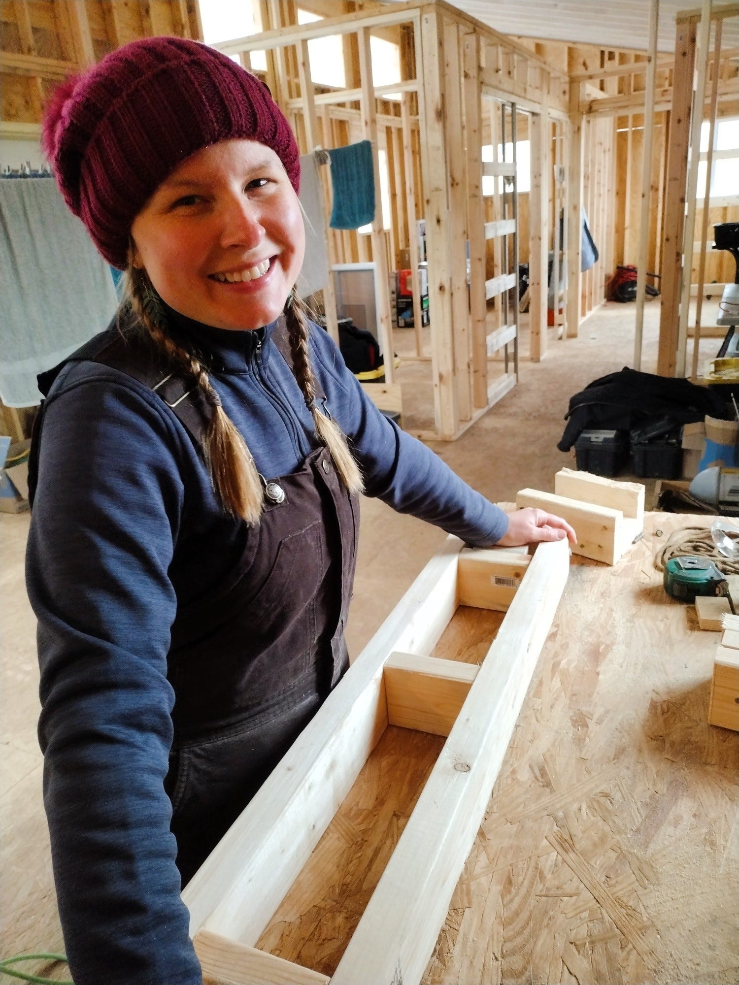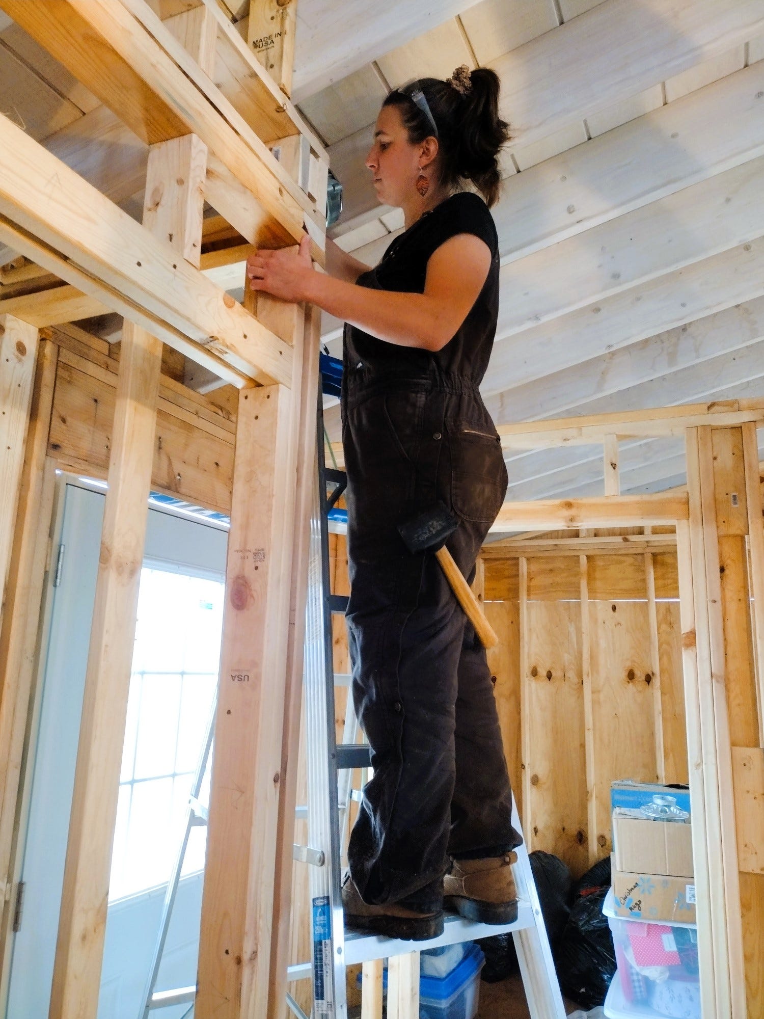 Once the jobsite was organized, Grace and I started on the rake walls again. It was as slow going as ever, but we enjoyed the time, belting out '90s country while custom cutting each stud.