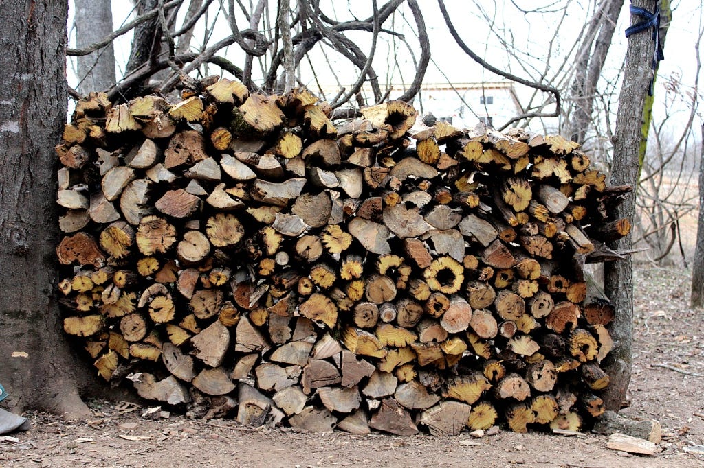 While we ladies have been busy in the bunkhouse, our menfolk have been keeping us in firewood. Erin and Bonnie-Jean have helped now and then, but the guys have done the bulk of the work -- selecting dead trees, cutting, hauling, splitting, and stacking the wood.