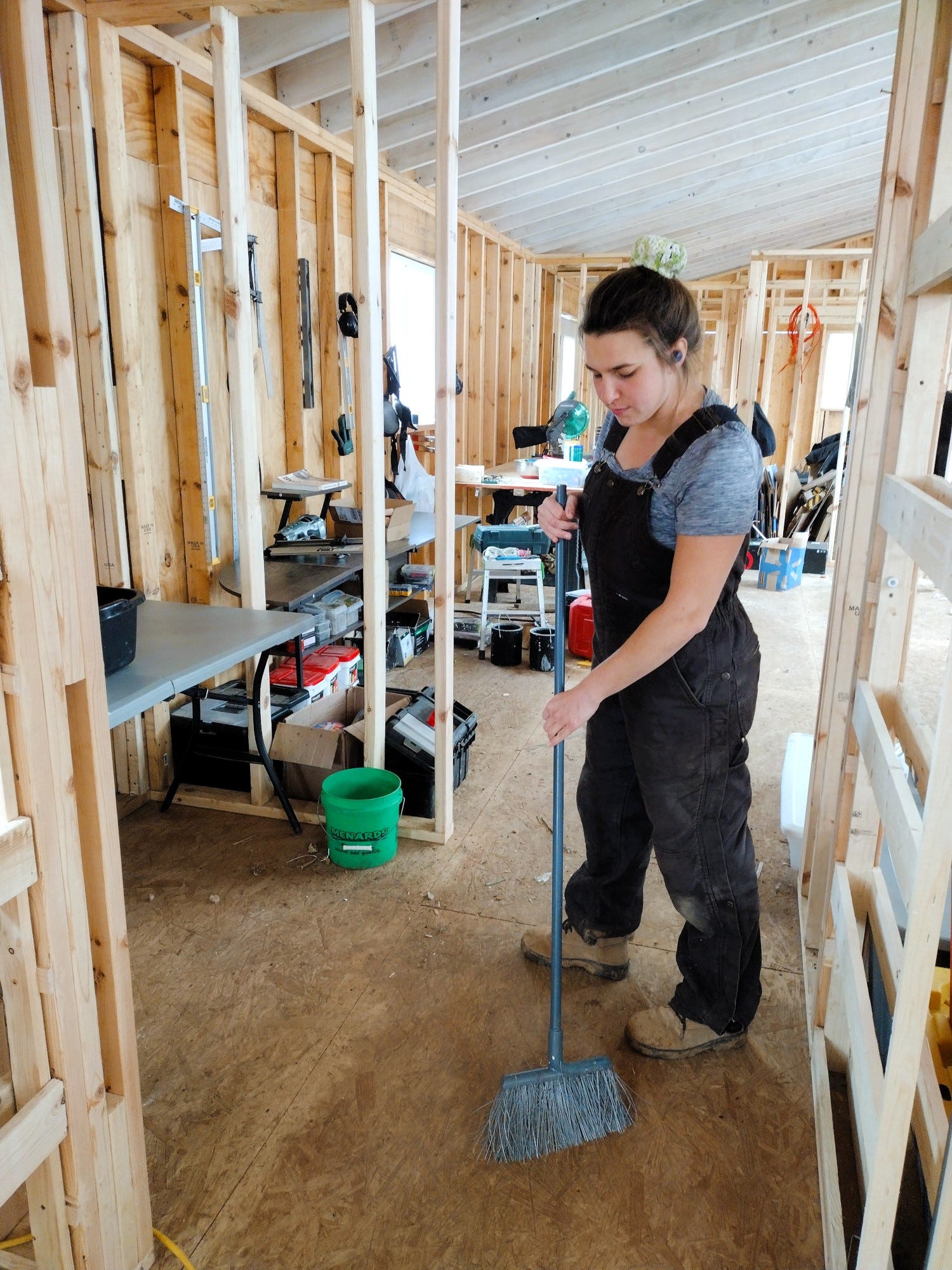 We got back to work in the bunkhouse on Tuesday. Due to the holidays, sickness, and bad weather, we realized it had been nearly two months since we last worked in there. We ladies spent the first couple days just cleaning and organizing. Boxes were piled everywhere -- some empty and forgotten since Christmas gifts had arrived in them. Totes of Christmas decor waiting to go back to storage were scattered around. Other boxes were full of tools and supplies that we had yet to open. People had worked on a couple minor projects during the last few weeks, and there were tools and mess left out. Building material and scraps had also been displaced. When we were done, the bunkhouse was back to it's tidy self. We all felt invigorated and excited to get back to work.