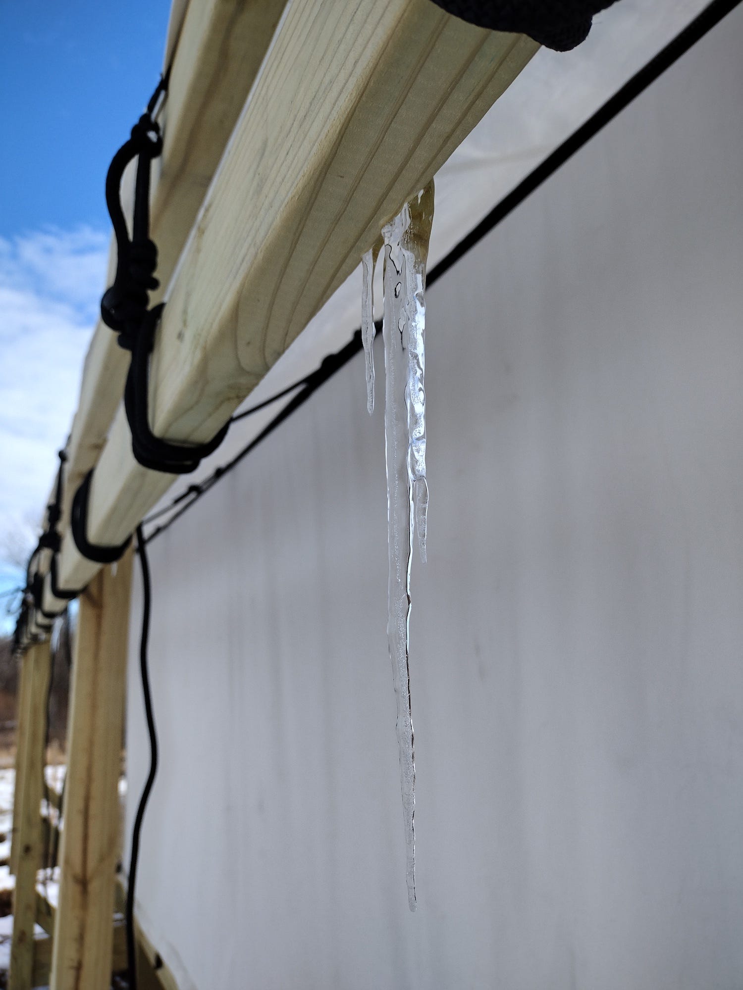 The germ my dad brought home last week is still working its way through our family. It's been a week of hot tea and rest, watching the snow fall in Springfield. Because of the sickness and snow, we didn't get to make any progress on our projects this week. Dad and Grace did make a trip out to the land to knock the snow off of the tent.