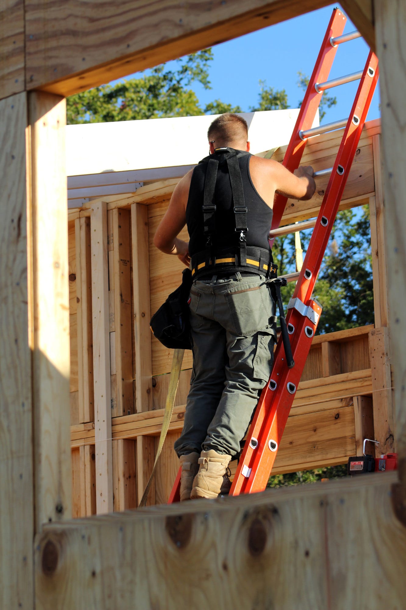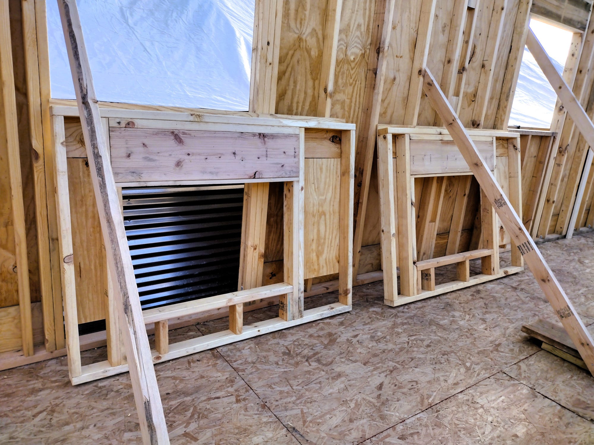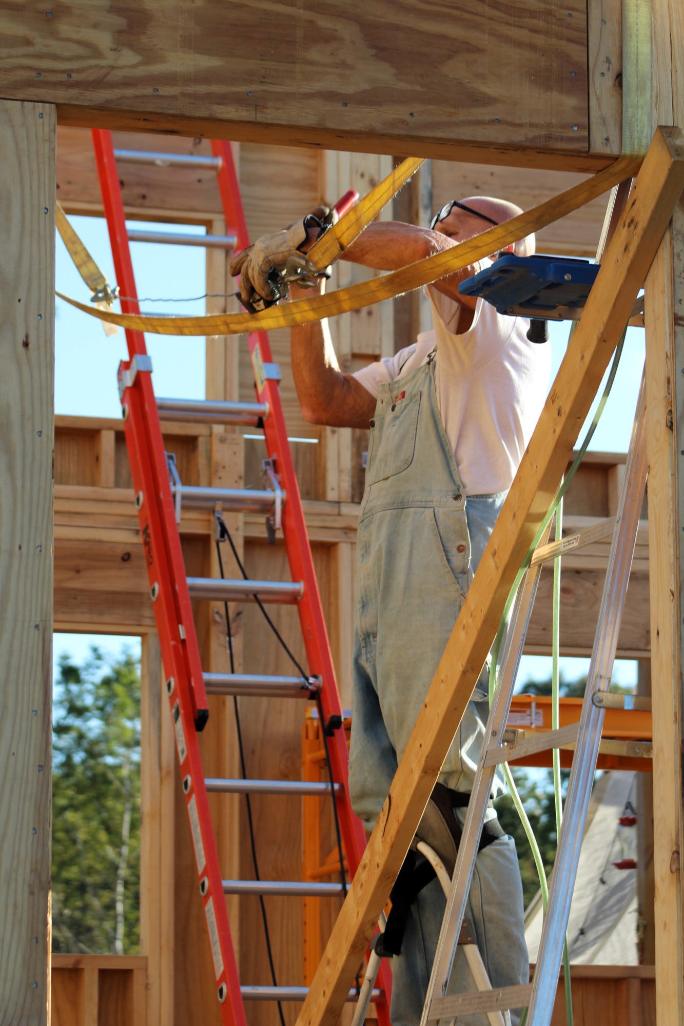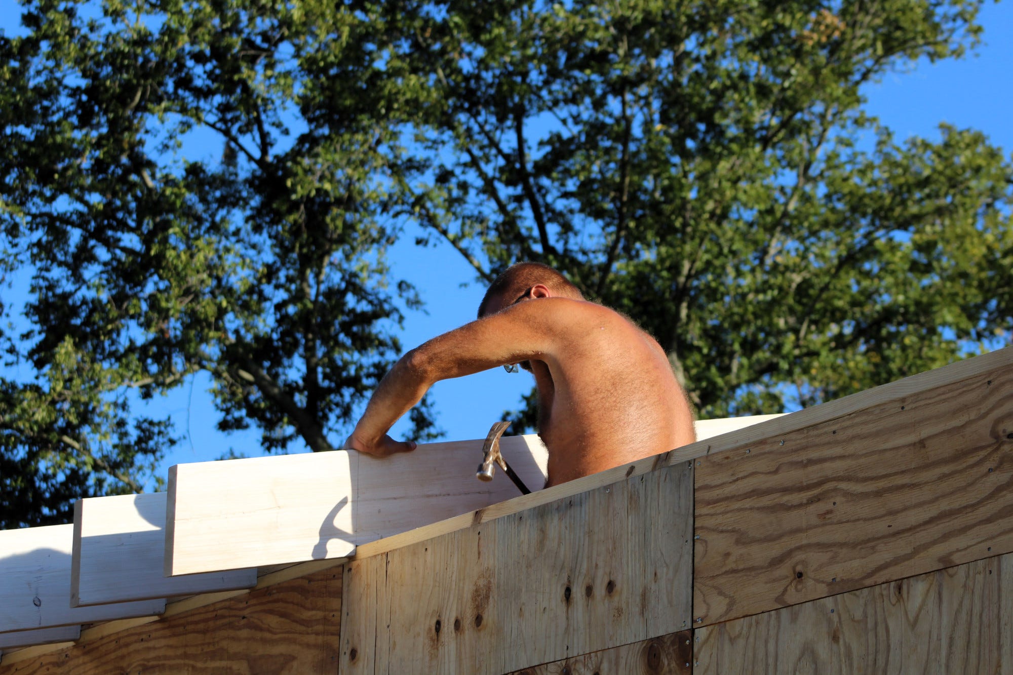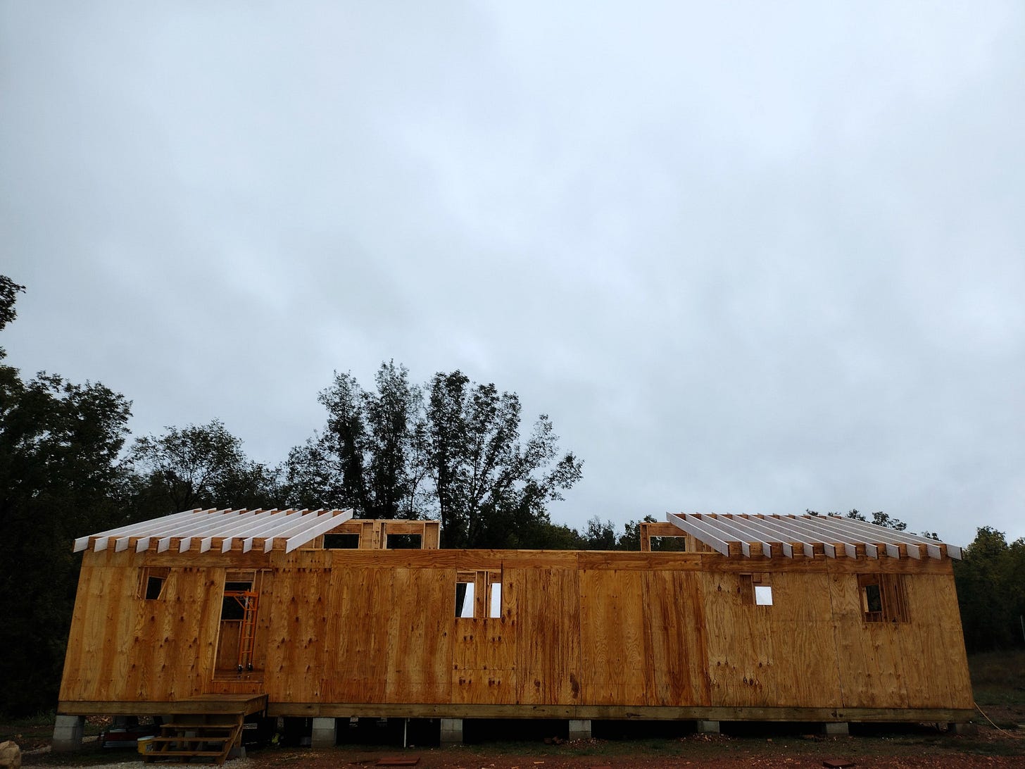 Our method for installing rafters is putting up sections of the half-wall as we go, adjusting the walls plumb. It has continued to be slow-going, but we are pleased with our progress, considering we could only install rafters in the evenings when our brothers were off work.