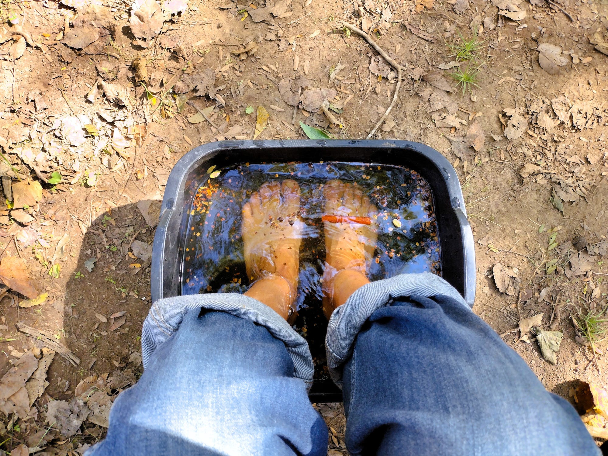 One Wednesday this week, when all the men were scheduled to work and Erin and the kids had some errands, we sisters (along with our mom) carved out a little time for some self-care. While we keep quite clean out here with our gas powered shower, it is difficult to do any deep primping. Our mom spoiled us with ordering supplies for a fall foot soak and spa. We filled steaming buckets of water with mulling spice and Epsom salt, and we sat in the woods and just enjoyed a quiet moment. A summer alternating between work boots and flipflops had done a number to my feet, and I almost didn't recognize them when we were done with the treatment. It was a delightful experience.