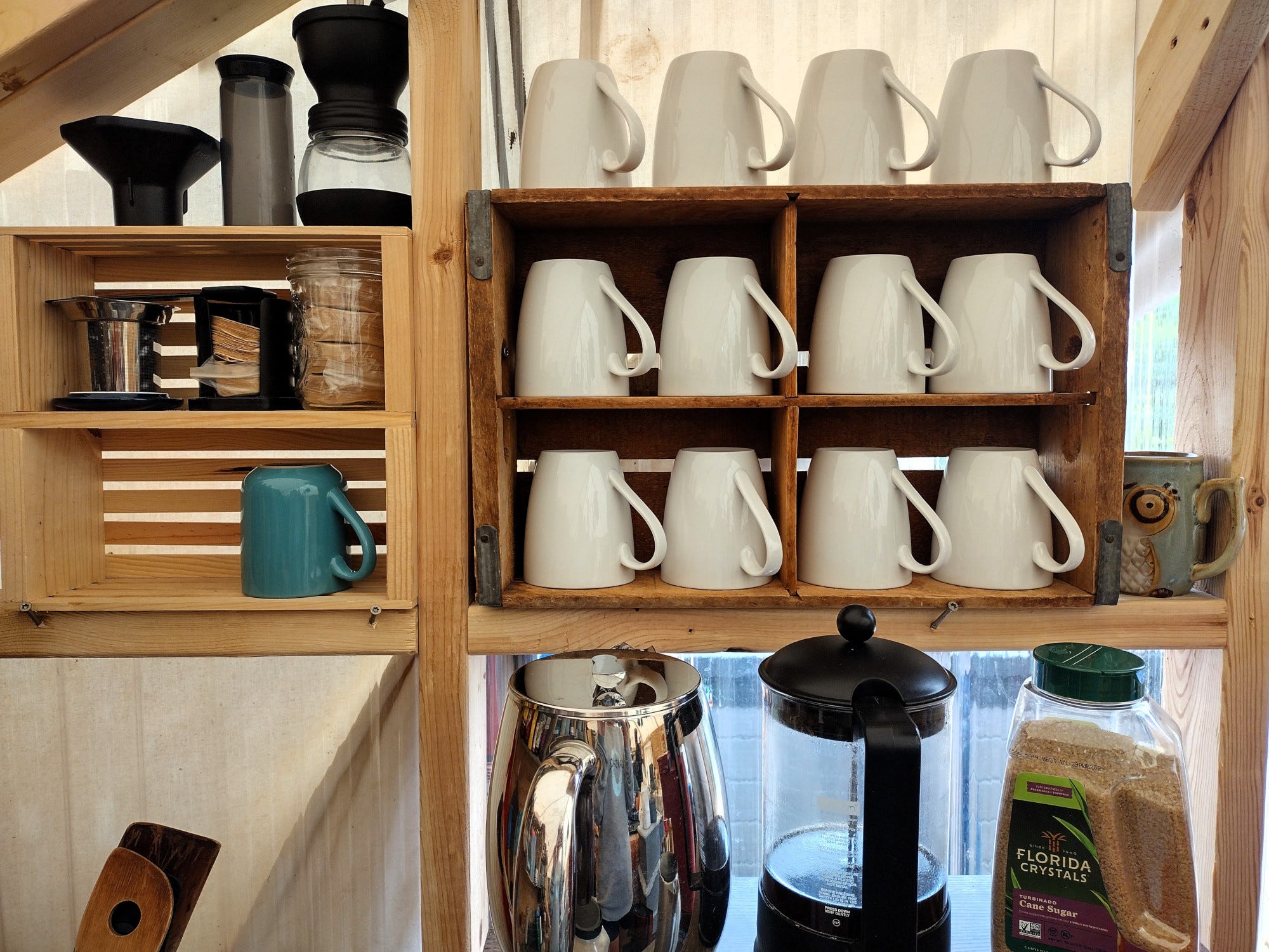 The cold weather has made an increase in our hot beverage consumption, and we have been having a mug shortage for the last couple weeks. Part of the problem is my little nieces breaking mugs while helping wash dishes (the girls are newer to the chore), but partly we are just using mugs more often. My mom found a good deal on a case of basic white mugs, which finally arrived yesterday. We have been making good use of them already.