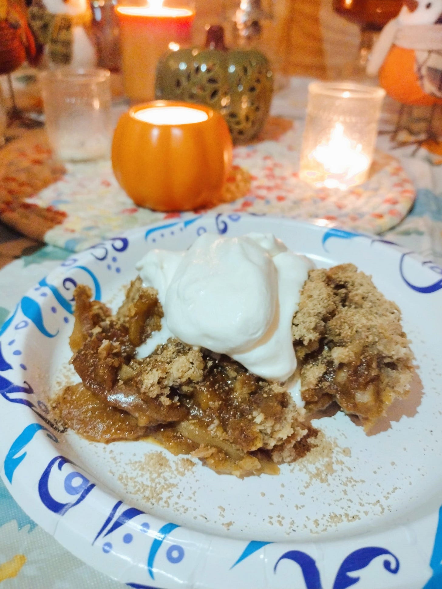 We were all pretty exhausted on Sunday, but because we were so close to being finished, our brothers put the last three rafters up in the afternoon. We rested and recreated for the remainder of the day. Since it was too cold for homemade ice cream, we made our first fall dessert in the slow cooker -- pumpkin apple crisp. I was a bit skeptical about the recipe, as we have tried a couple slow cooker crisps since camping, and none have turned out well. But this recipe was a hit -- warm and full of comforting spices. I have a feeling we will make it again before pumpkin season is over.