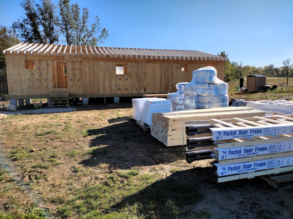 It was just us ladies at home on Tuesday. All the next steps on the project required more height and muscle than we have between us, so we took a break from the bunkhouse to deep clean the wall tent. As of today, we have lived out here for six months, and while we do our best to be tidy, dust and bugs have a way of getting into all the corners. It was a lot of work, but the experience was rather therapeutic. It feels like a fresh start for the last leg of our tent living experience. In the evening, our latest Menards order arrived -- this one with our windows, insulation, and lumber for our interior framing. We hope we can get by with picking up the rest of our supplies ourselves, but we shall see.