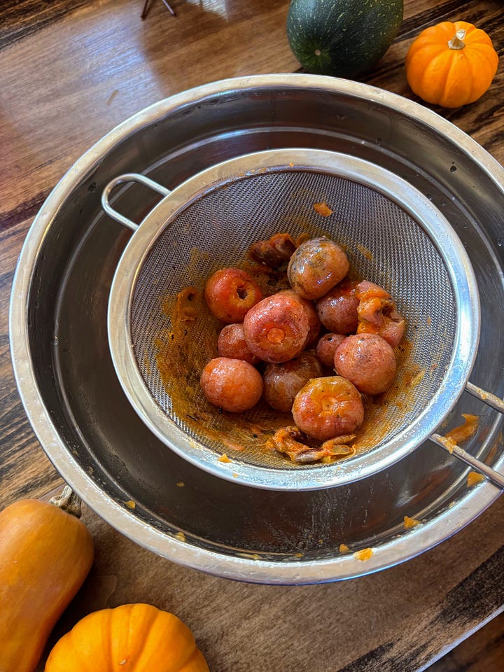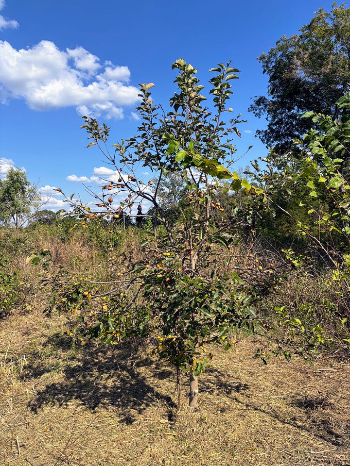 While at the clothes’ line, Grace looked up and noticed a persimmon tree heavy with ripe persimmons. No one could believe we’ve never noticed it. Grace and Levi weed trimmed and cleaned up the area right away, and Grace picked all the ripe persimmons. A few days later, she picked more.