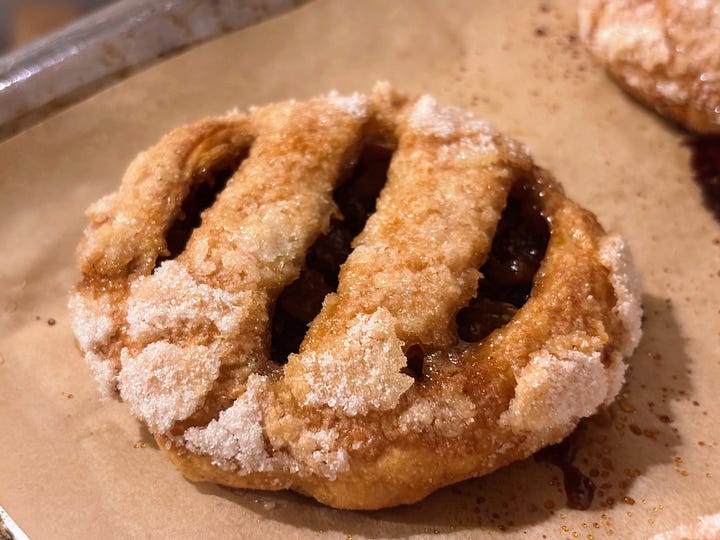 Yesterday was the feast of St. Luke — the day the Church commemorates the great evangelist. St. Luke is thought to be the only gentile author of scripture, writing the gospel that bears his name as well as the Acts of the Apostles. And so, with windows open to fill the house with the cool evening air of fall, my sisters, sister-in-law, nieces, and I gathered around a kitchen table filled with raisins, spices, sugar, and puff pastry — the ingredients for Banbury cakes.