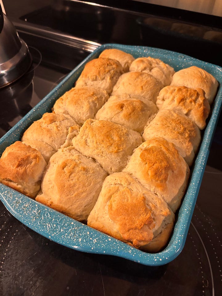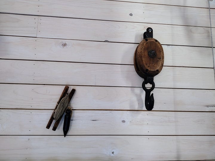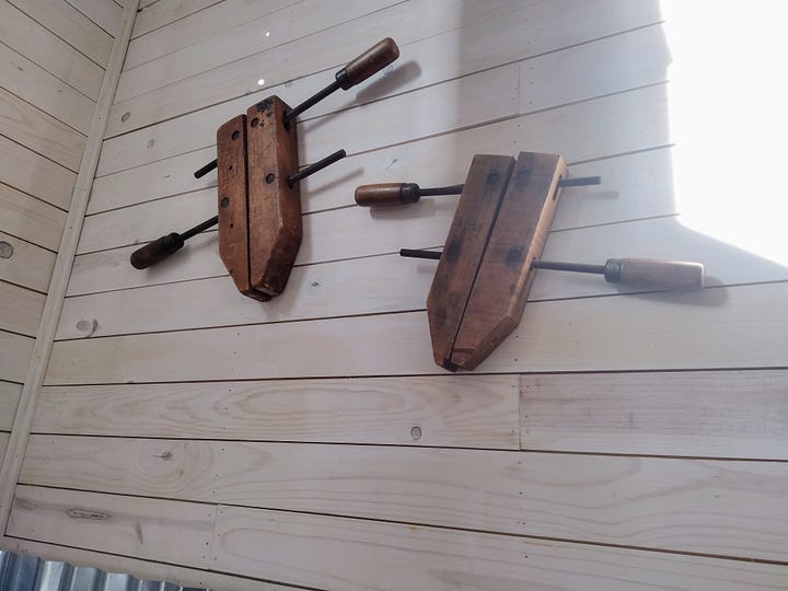 It was a tiring week, which made the rainy Saturday indoors yesterday all the more of a blessing. We hung up some of the decor we unpacked over the last several days — old tools and farm implements we’ve had for years. We did some cleaning. Grace made a pot of soup, and I baked some sourdough pan rolls.