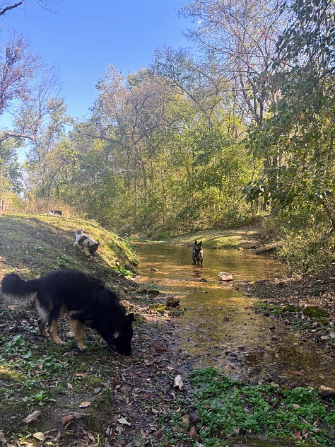 Then —dad had a small accident. The breaks on the tractor gave out, and he ran it down the hill and into the ditch created by our wet weather creek.