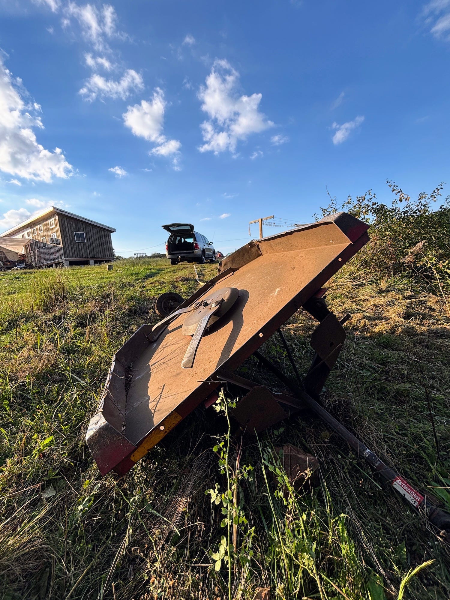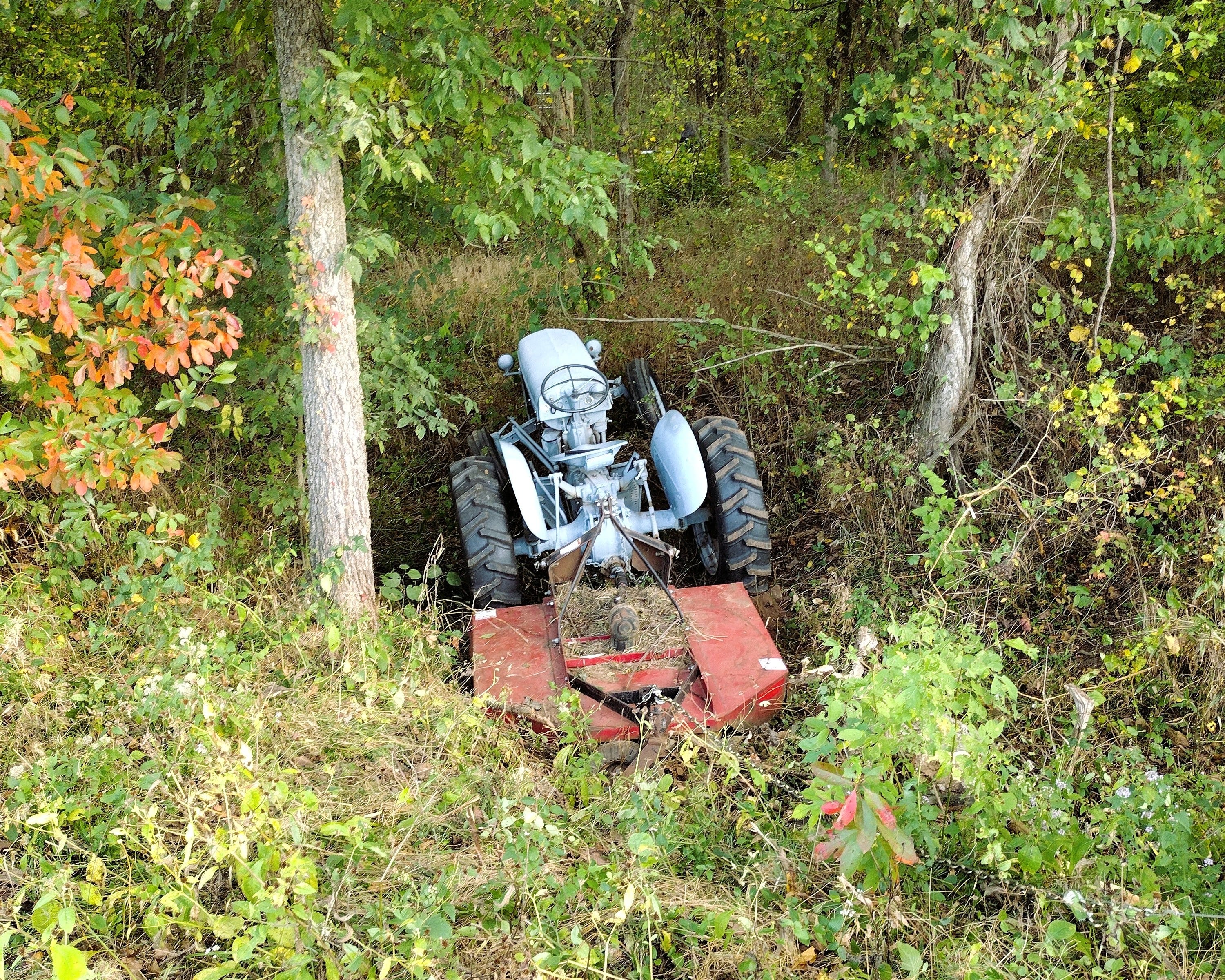 Our dad planned to spend his days off brush hogging the very overgrown “cleared” part of our land. This has been a goal all year, but we’ve had nothing but problems with our little 1952 Ferguson TO30. After months of effort, our dad finally got it running a couple weeks ago. On Wednesday this week, he started mowing. I couldn’t believe how much progress he made in just an hour.