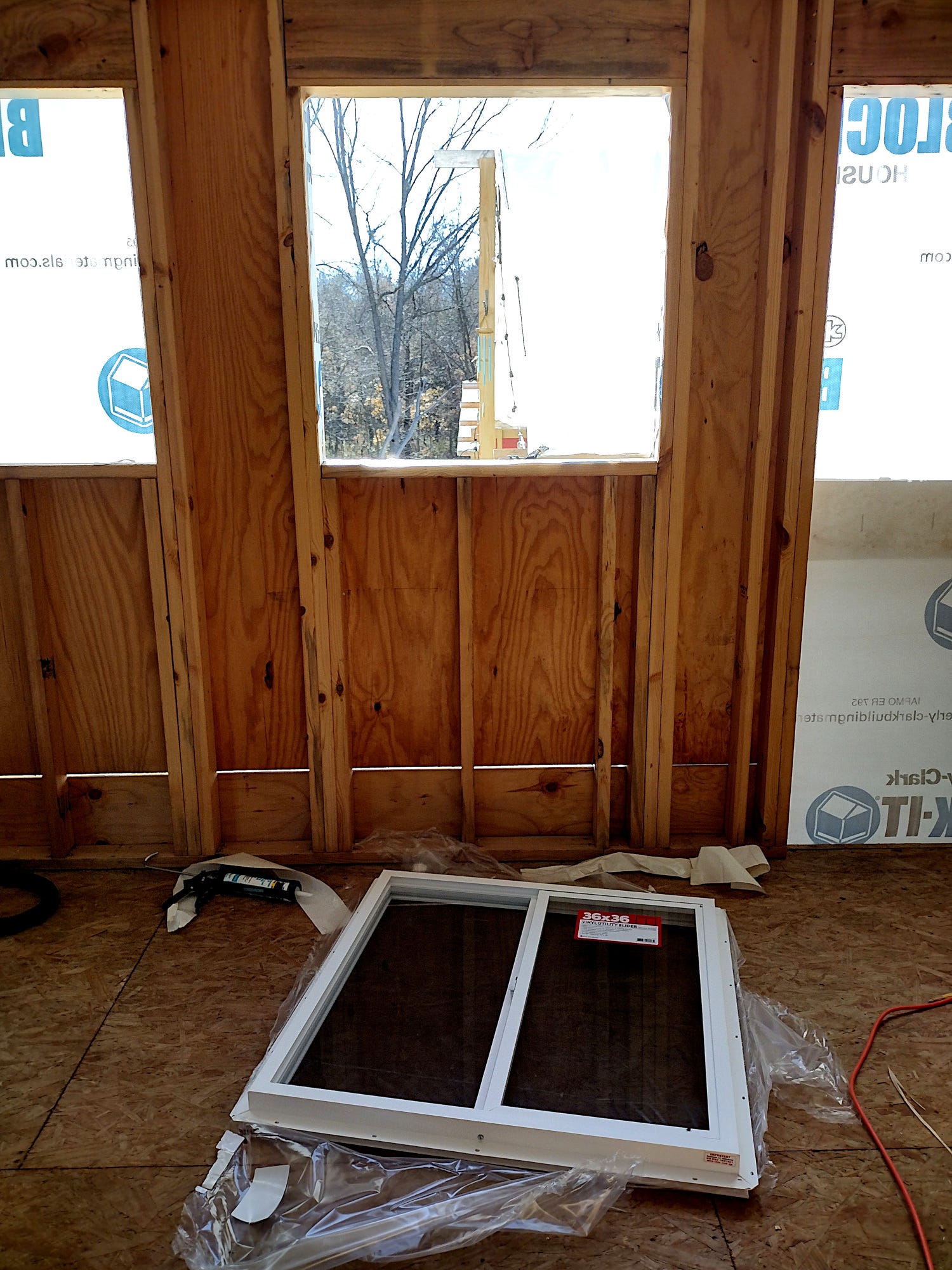 Levi and I spent a day installing windows. It felt so good to get a cross-breeze going through the house -- as it was quite warm and stuffy during those warm days early this week. Dad, Grace, and I put a door in. It was tricky, but we finally got it shimmed square and closing properly. On Friday, most of the adults were working, sick or still trying to recover, so I spent most of an afternoon by myself just cleaning and organizing the build.