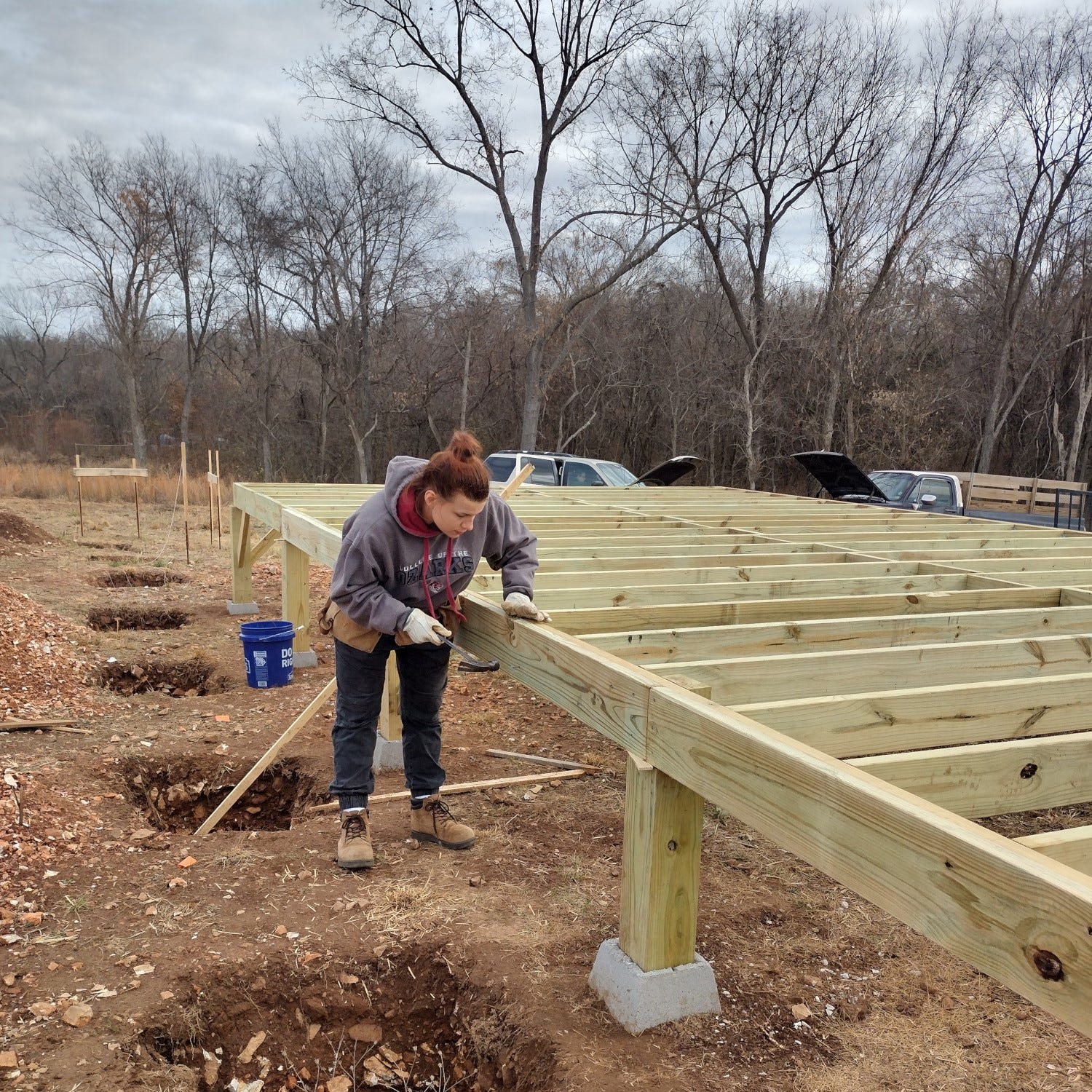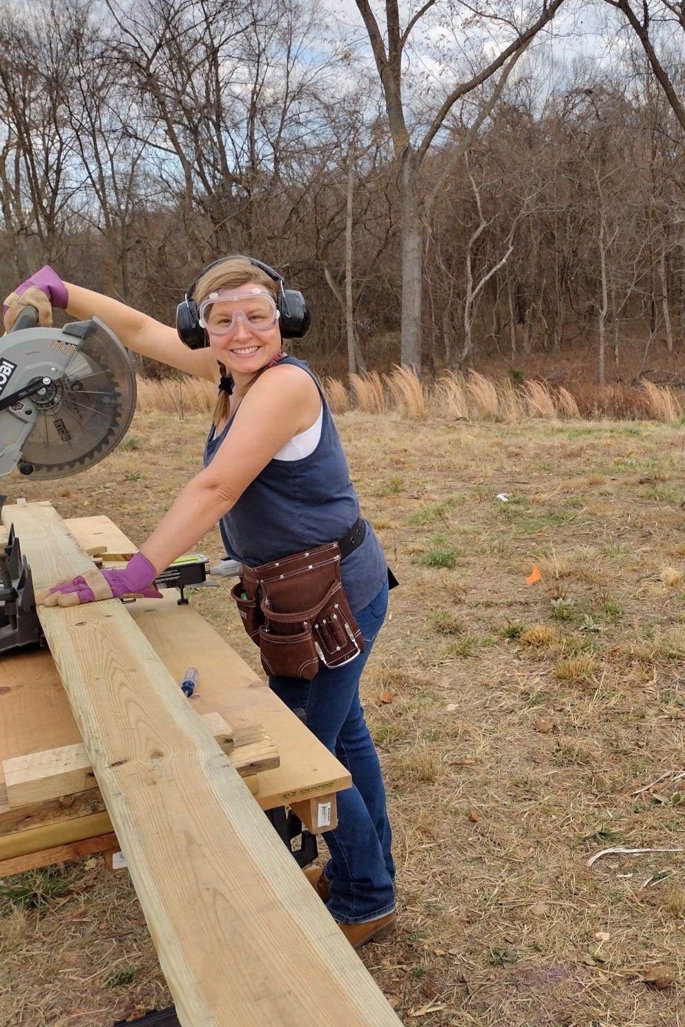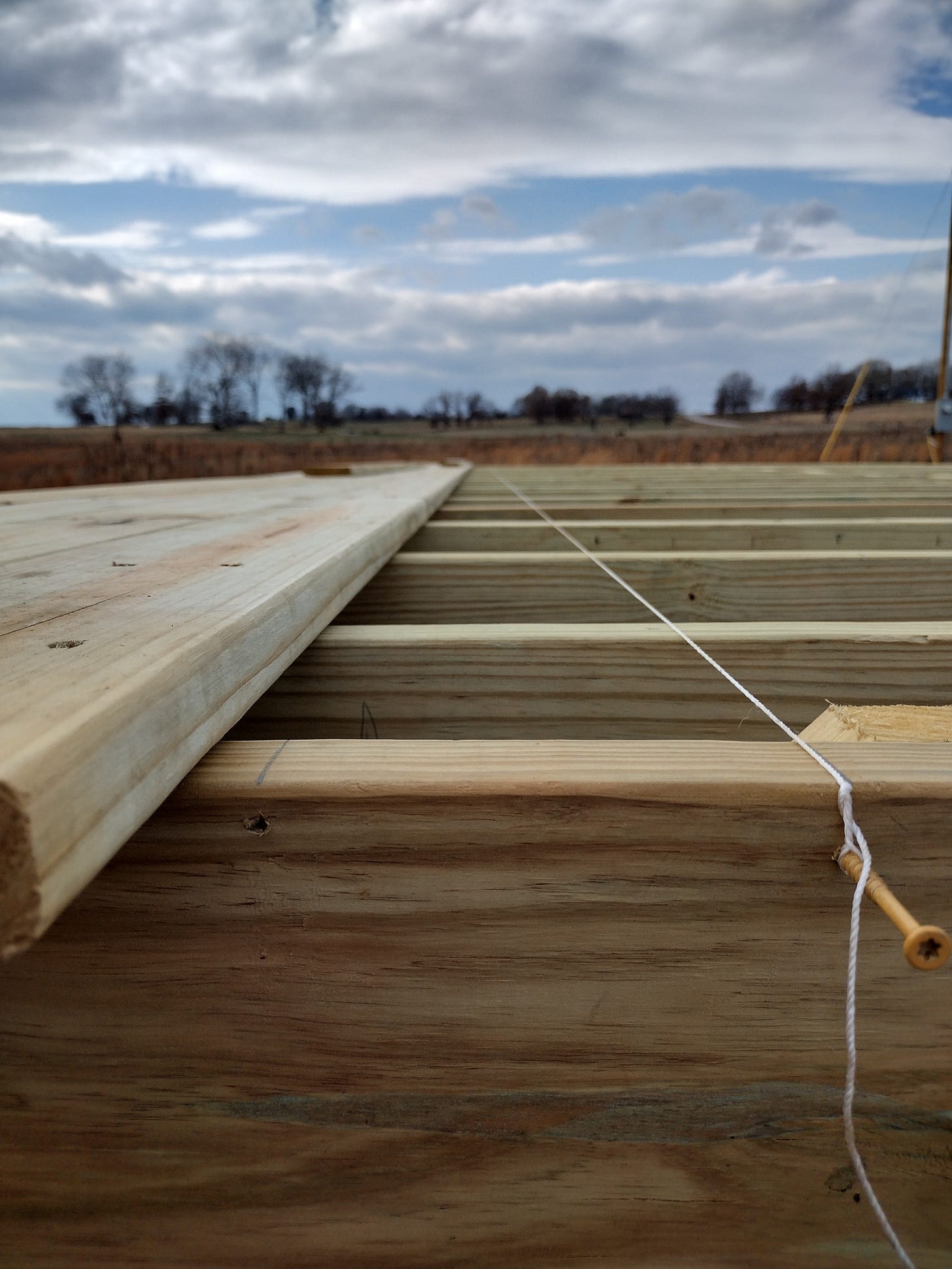 Keeping everything straight and square has been a challenge! Our chalk line broke, so we have been running extra string lines until we can replace it. I got to use the saw quite a bit during this process, which I loved.