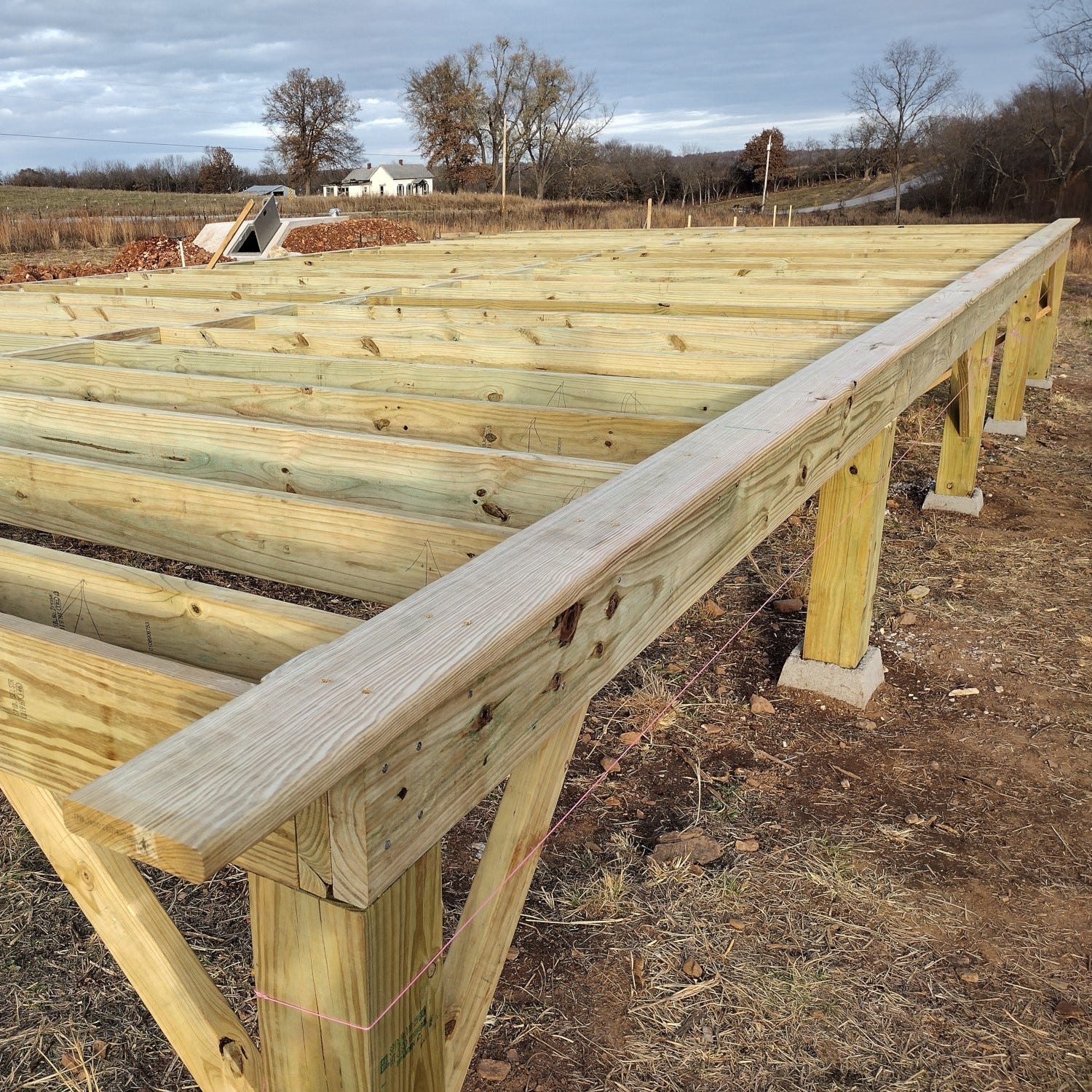 It was fun learning to attach joist hangers, though our joists were pretty warped and that made the process far from easy! We were especially thankful for our dad and brothers this week. It would have been very challenging without them.