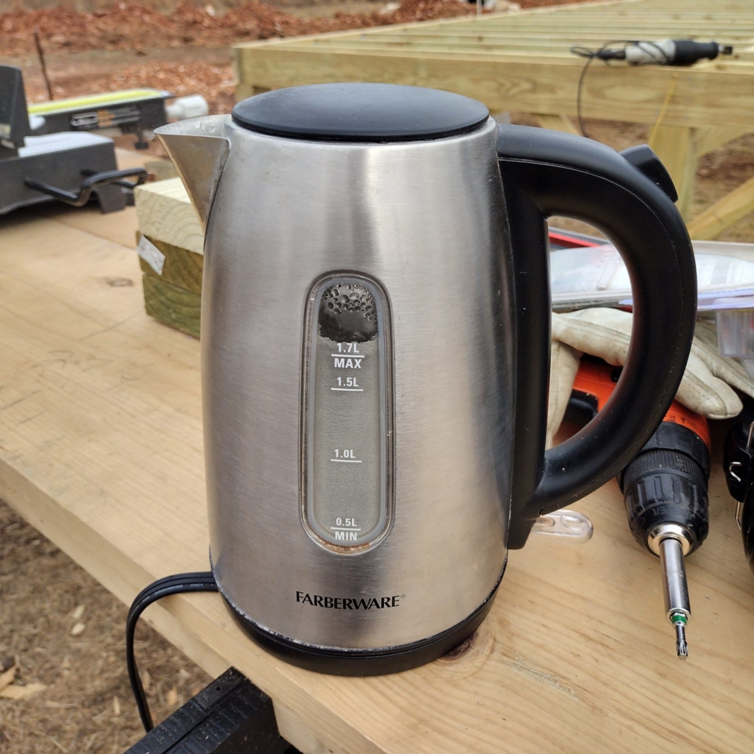 Now that we have electricity at our build site, we have been bringing our hot water pitcher for coffee. Having something hot to drink has made a big difference on the cold days! We didn't get any pictures of it yet, but Grace is moving our fire ring closer to the build site, so we have a place to warm up when needed.