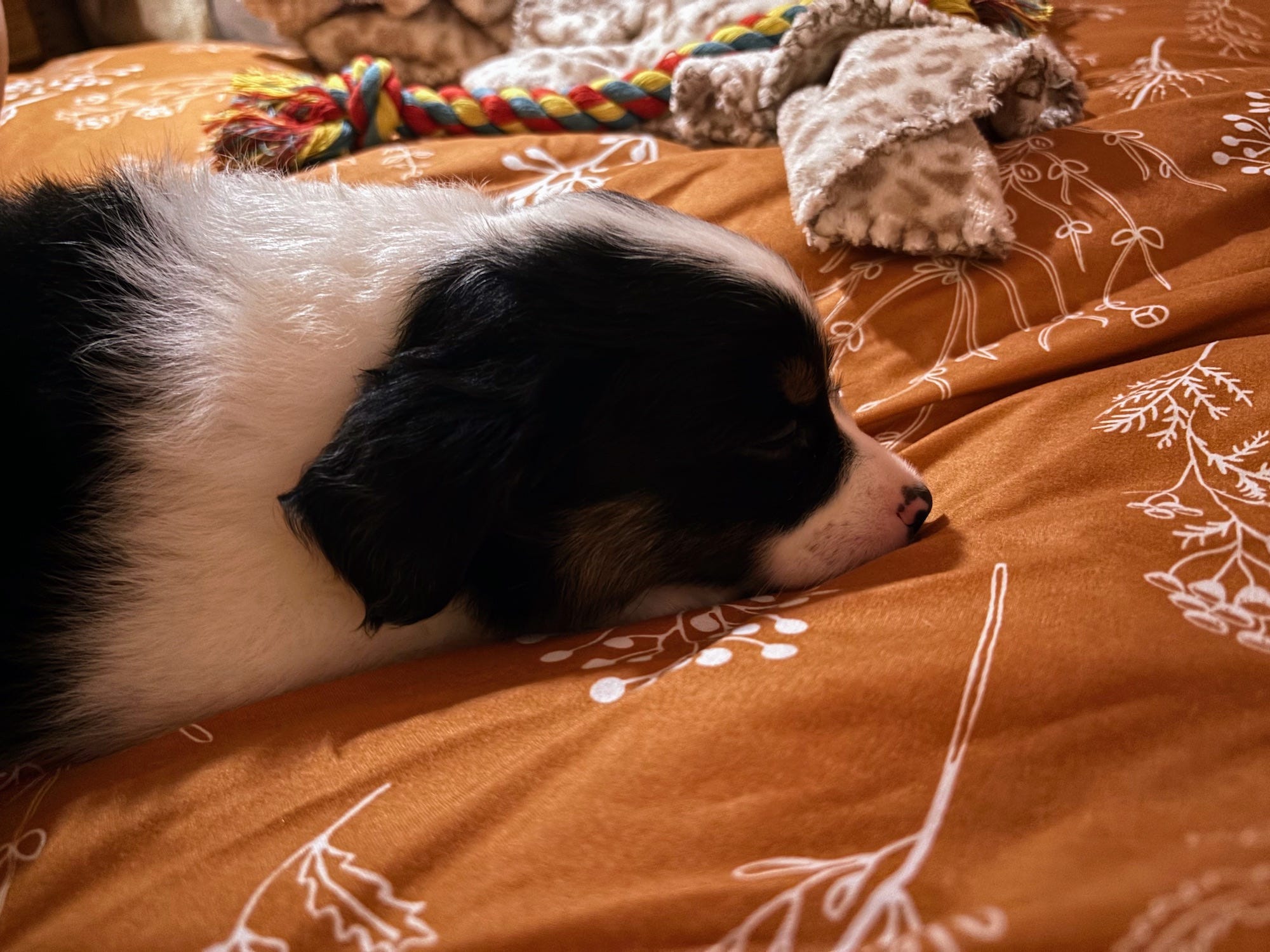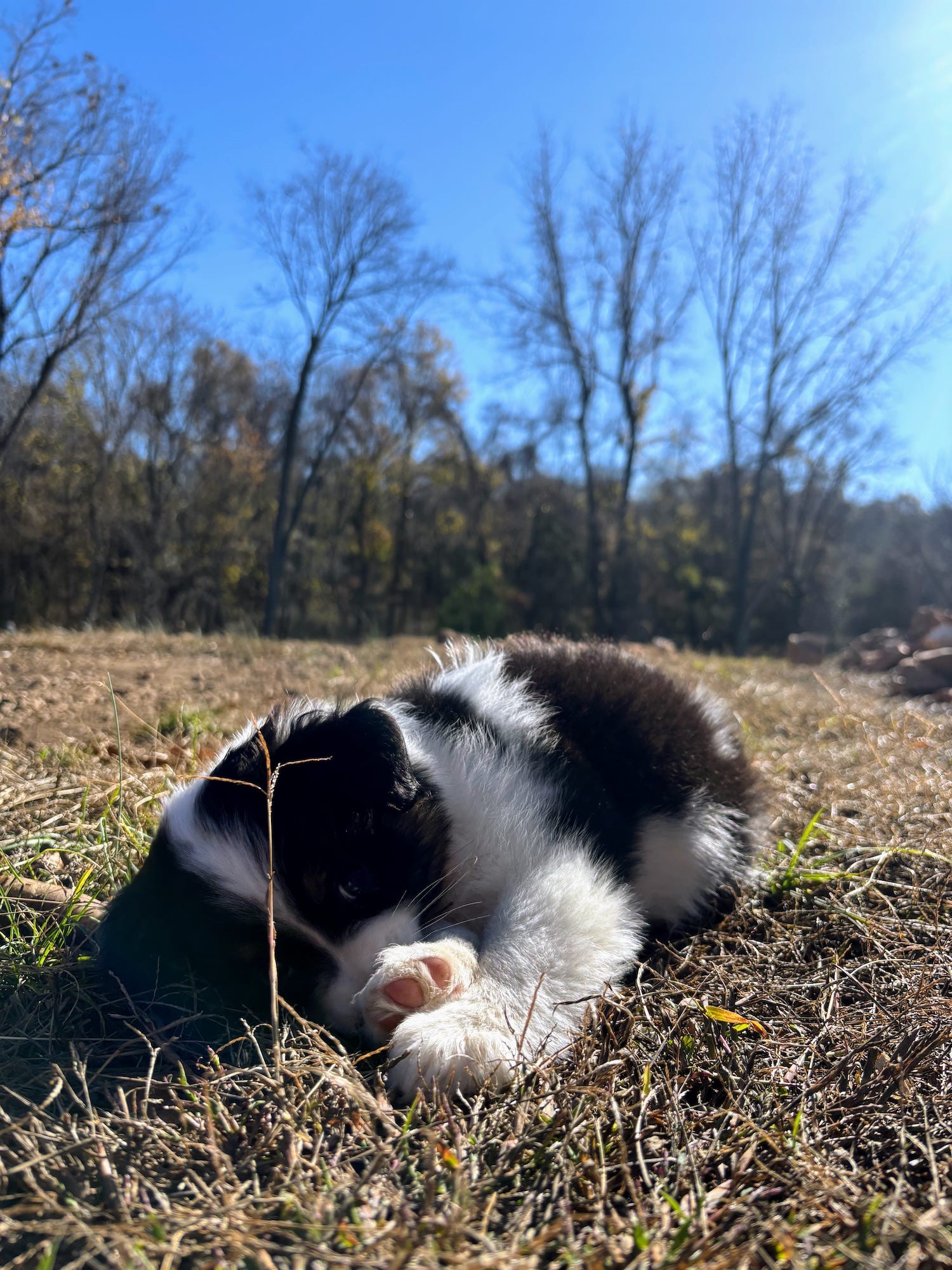 When we pulled into the gravel parking lot of the Springfield Stockyard, the silver truck was already waiting. The sun was just beginning to set as Jeremiah and I got out of our folks' SUV, smiling at the woman beside the truck. In her arms, she held what we have dubbed an angelic ball of fluff -- a black and white Miniature Australian Shepherd.