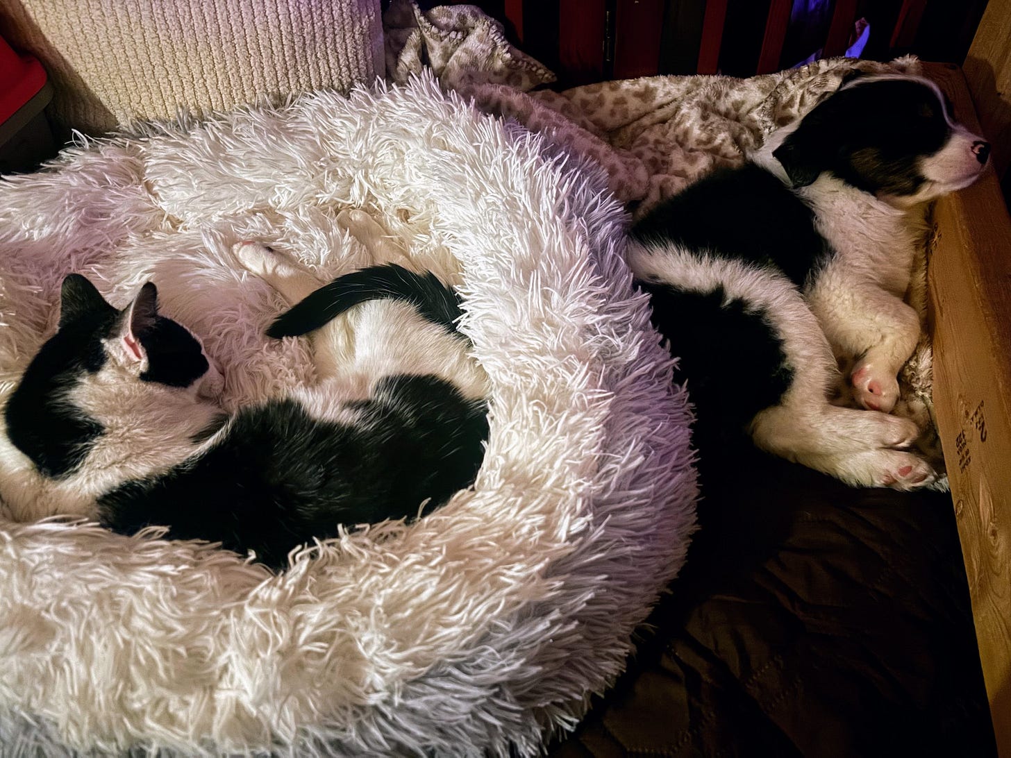 Even Grace's cat, Strider, loves Milly. They tumble and wrestle around the bunkhouse and tent, and they snuggle in Milly's fluffy new bed. Sometimes, Strider kicks Milly out and keeps the bed for himself.