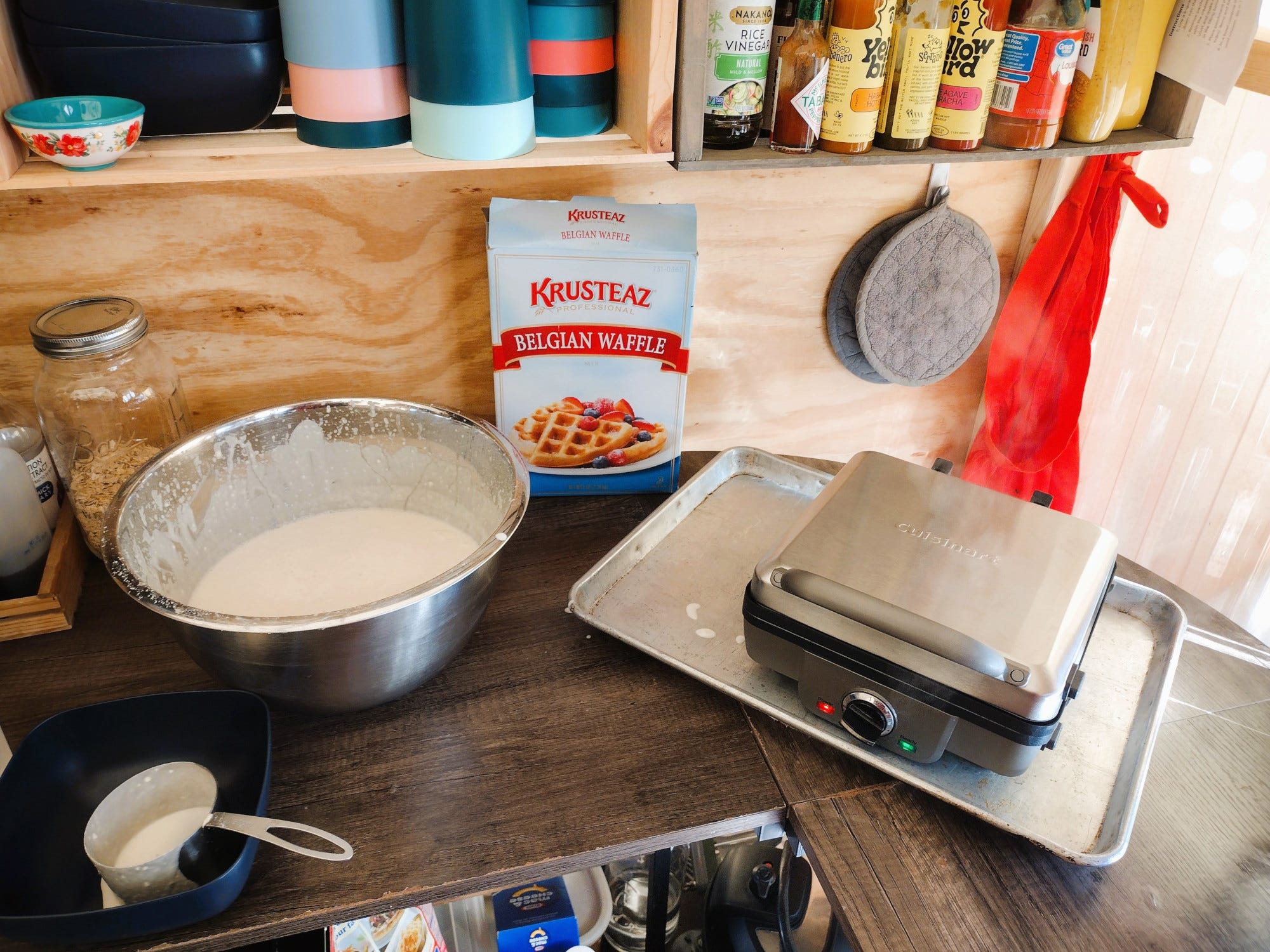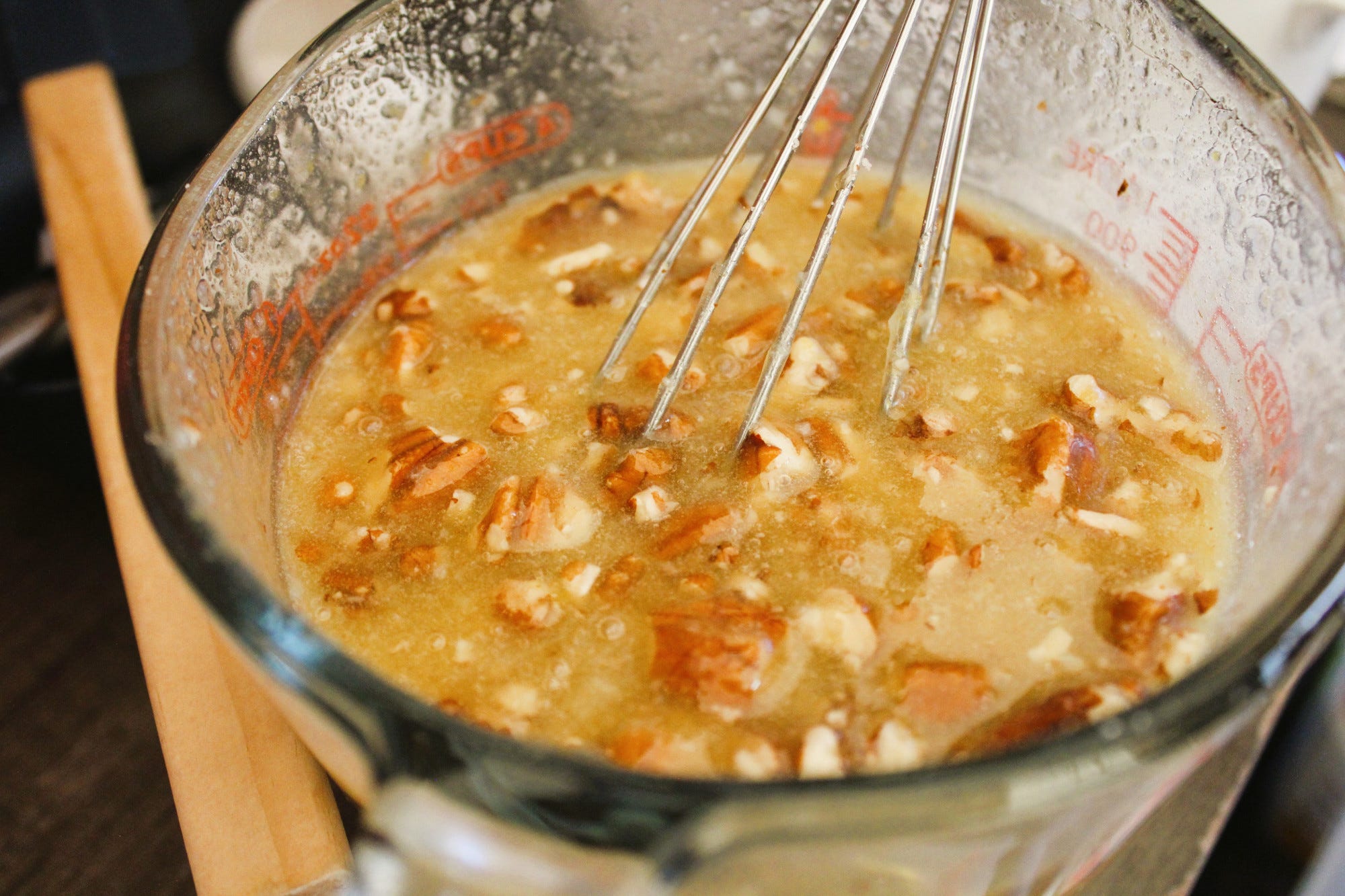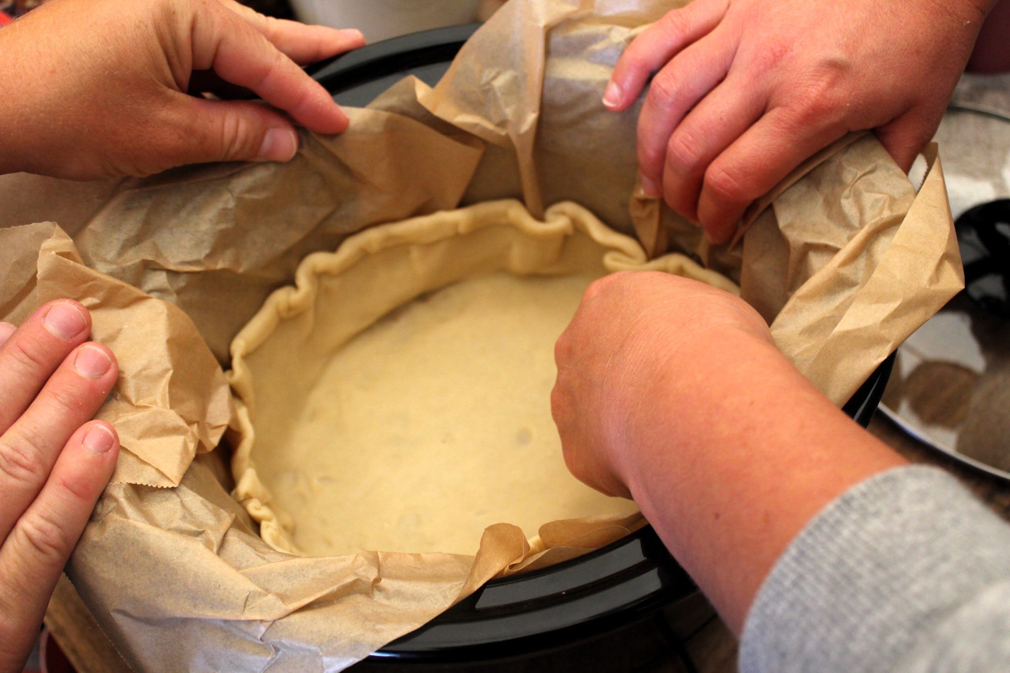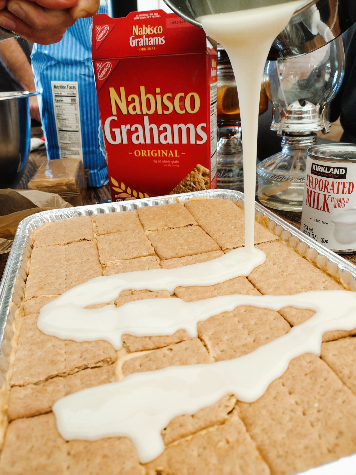 It was our first Thanksgiving without a kitchen. Life has been so crazy, we figured we would enjoy a pared down feast. We headed into the holiday armed with several slow cookers, an Instant Pot, a hot plate, an electric skillet, and an electric griddle -- and we kept our expectations low. Grace, Erin, and I started with making our desserts on Wednesday -- two pecan pies (cooked in a slow cooker) and a pumpkin pudding refrigerator cake. Mom and Bonnie-Jean started some slow-rise English muffin dough that day as well.