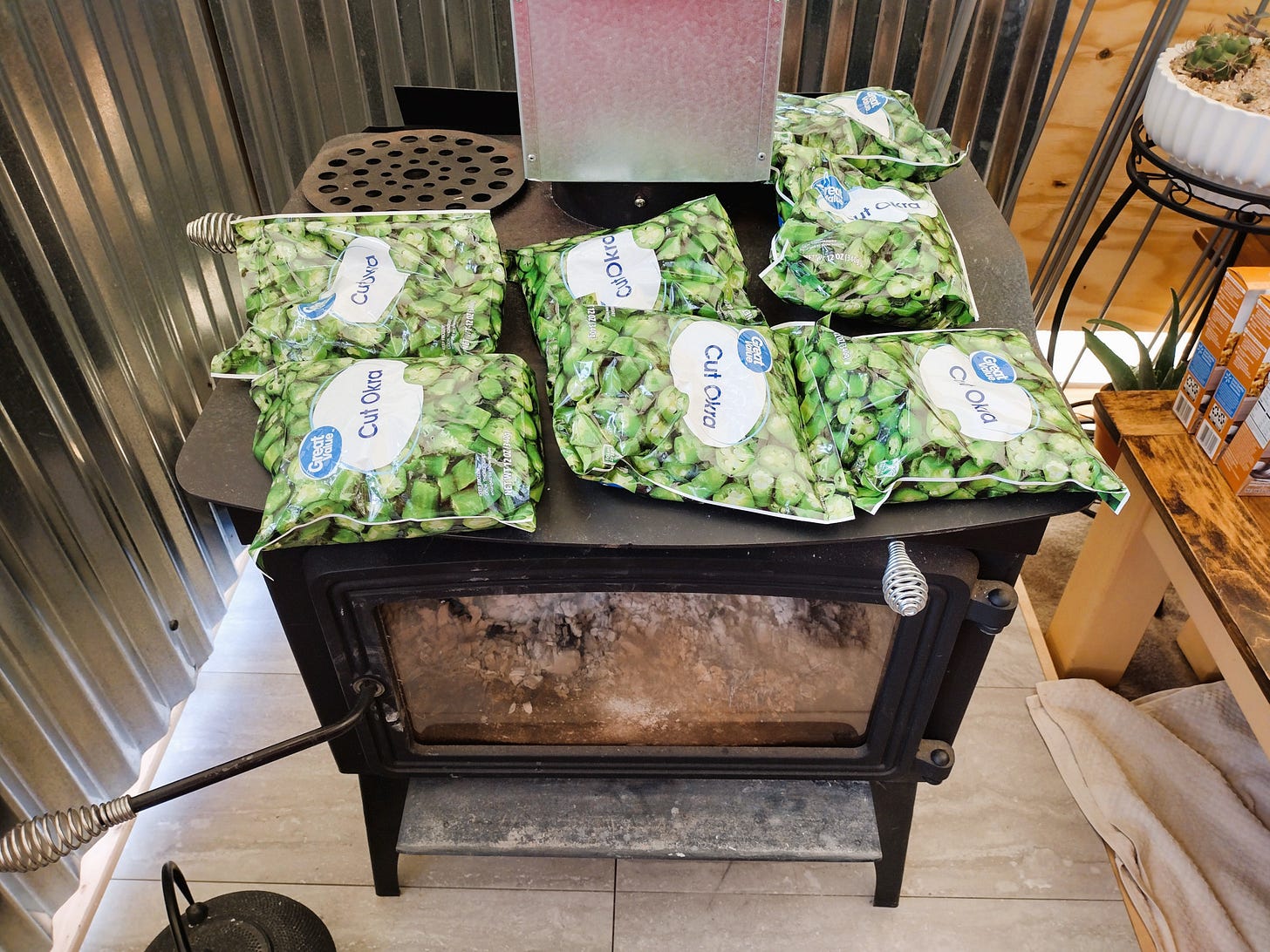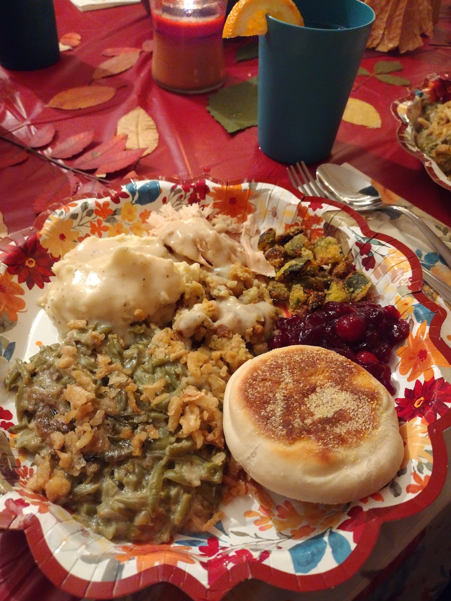 The rest of the fixings turned out similarly well. We made The Pioneer Woman's Instant Pot mashed potatoes, country gravy (started in the electric skillet and transferred to a slow cooker), slow cooker green bean casserole, fried okra in the electric skillet (we forgot to thaw it and had to rush the process by laying it on the warm woodstove), hot plate cranberry sauce, English muffins on the electric griddle, and some box stuffing. Everything turned out fantastic. I honestly can't remember a Thanksgiving meal I enjoyed more.