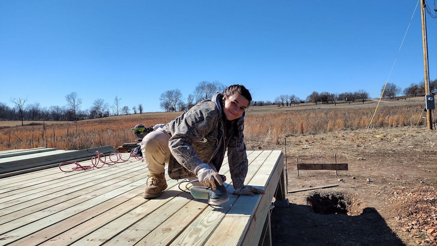 We took the supplies out to our site that day, and we did some work finishing the deck. We added some extra screws (we had run out), and we did some sanding of the splintery areas.