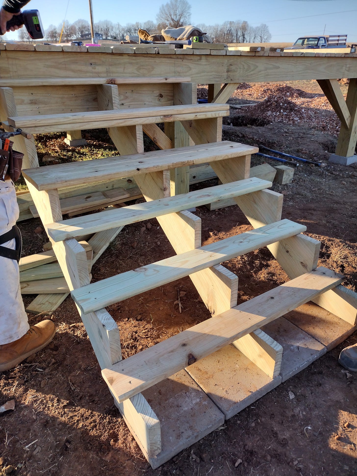 We rarely work Sunday afternoons, but we made an exception this week so we could take advantage of the good weather. We started on our deck stairs.