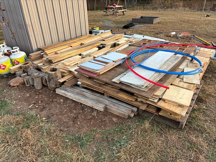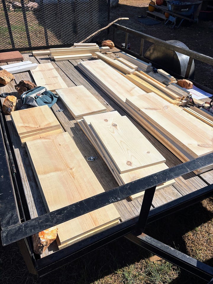 On Saturday, a bunch of the family worked on moving and organizing our lumber. We have several stacks of materials for different ongoing projects — interior and exterior siding, kitchen storage, etc. We also had two scrap piles that could be combined. Grace and Levi headed up this project. When they were done, the yard looked so much better.