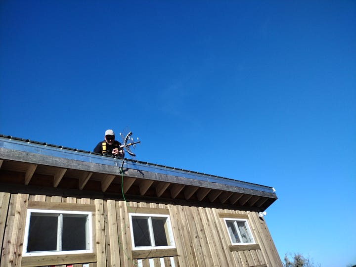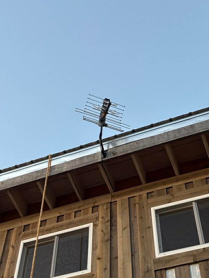 My dad and I also started the process of installing an antenna. We had planned to do this last week, but then we realized an outdoor antenna needs to be grounded, and we had to order the materials. Once everything arrived, I assembled the antenna, and my dad mounted it on the southeast side of the bunkhouse. Then he ran the ground wire to our copper grounding rod near our electric panel. When Jeremiah was off work, he ran the coaxial cable through a wall to our entertainment center — a task that was rather tricky given the wall was already mostly finished. We were able to remove a couple boards on one side, which helped. As of yesterday afternoon, we had more than a dozen channels and three major networks.