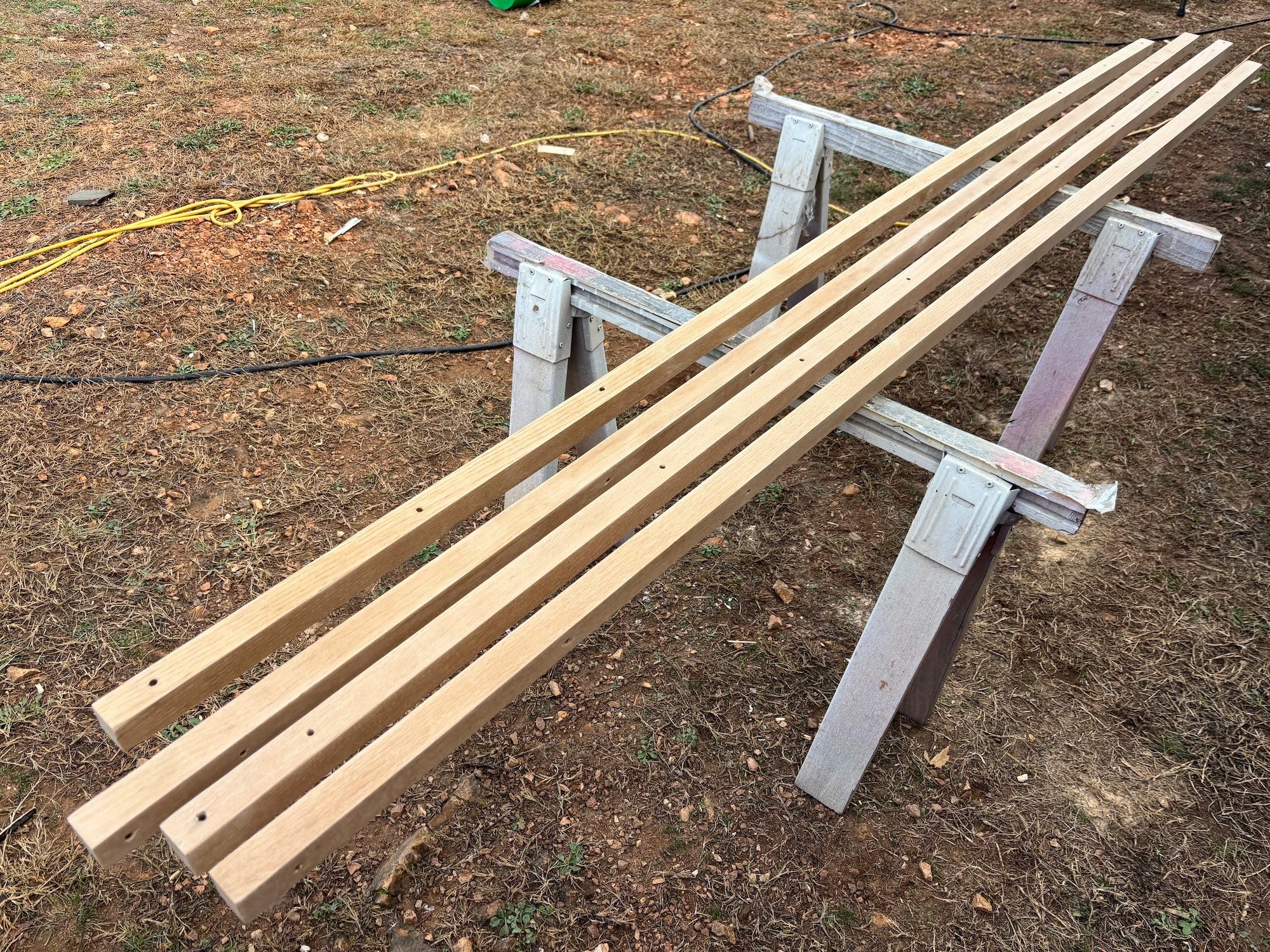 Grace started refinishing our old quilt frame, which our mom had when we were kids up in North Idaho. It’s one of our few possessions to have come with us on the move to Missouri and every move since. We are going to hang it in the living area of the bunkhouse.