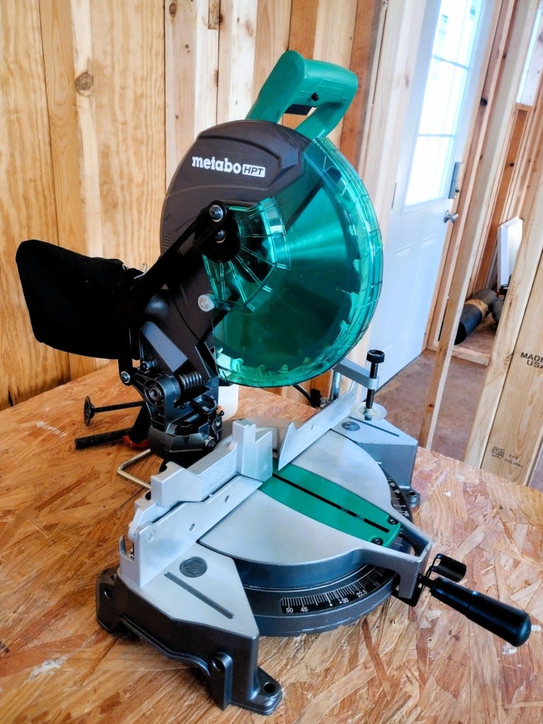 Between having sick people, and dealing with a migraine myself for the first part of the week, we didn't accomplish much on the bunkhouse. We fixed a wall that had ended up with some issues. We unboxed and set up our new miter saw. We made crockpot meals most nights, which helped keep things simple.