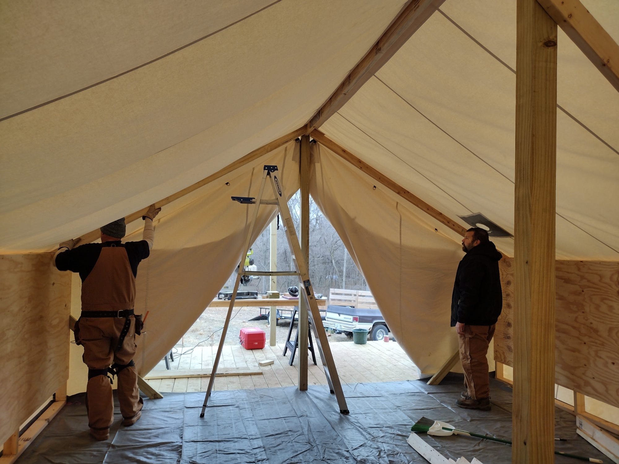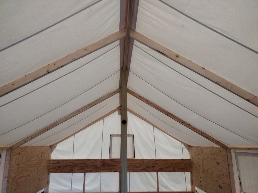 Our dad and brother Levi did most of the actual work on the rafters. I helped with the design ahead of time. During the actual project, I held drills, ran for screws and levels, and generally assisted wherever I could. Once the rafters were up, the tent looked great.