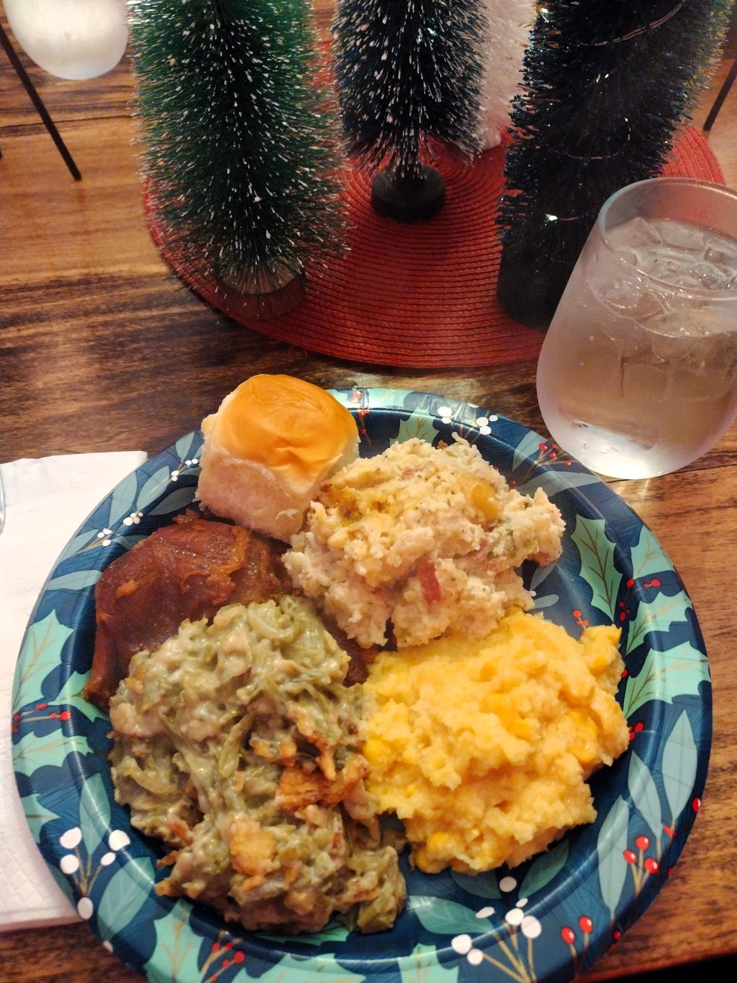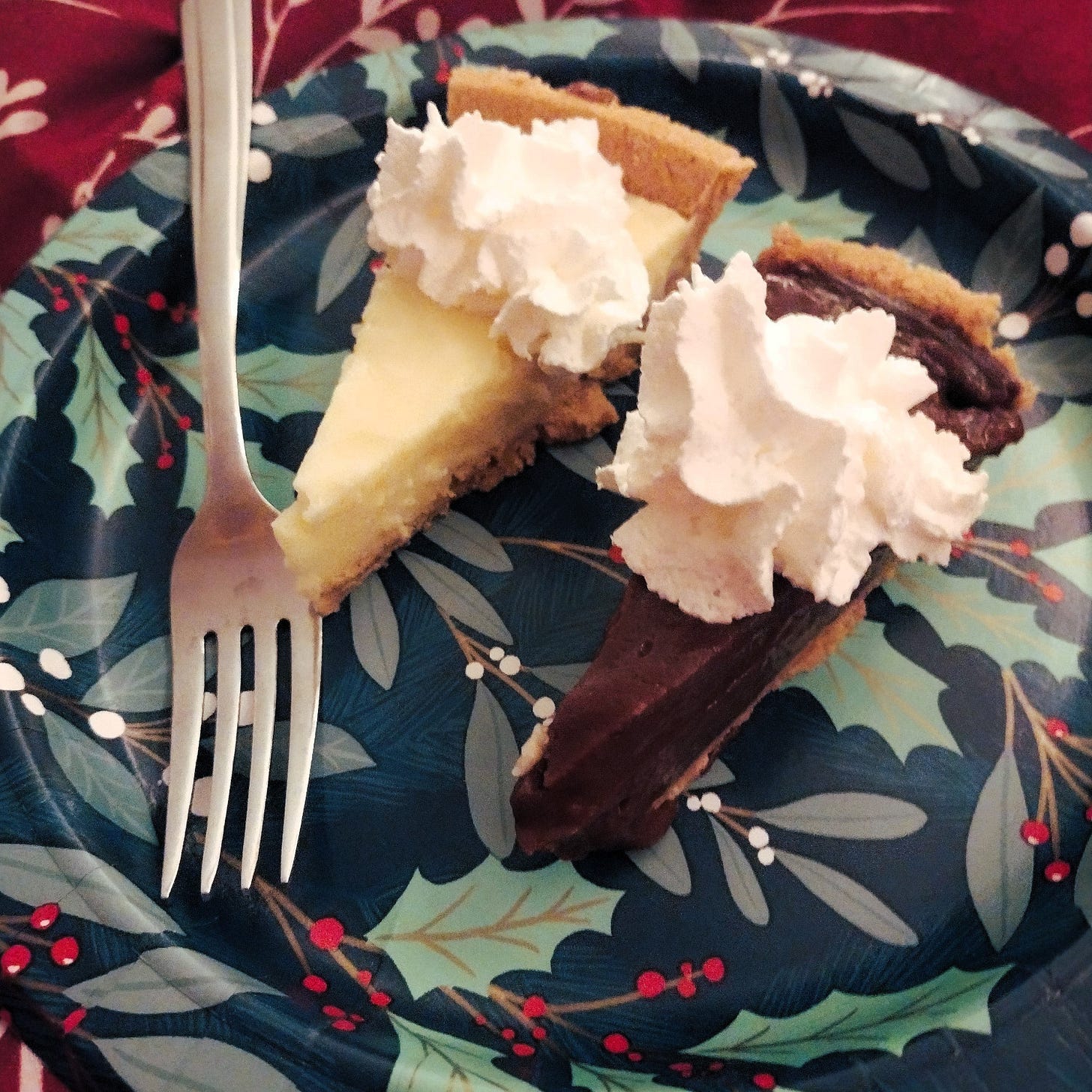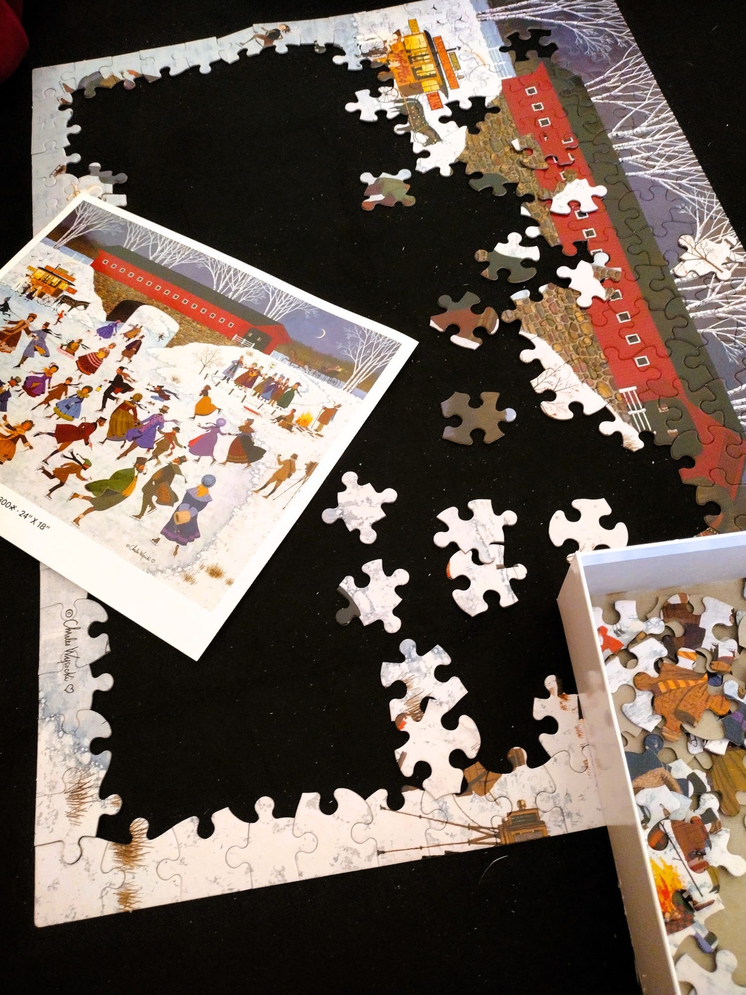 We followed my Dad's family tradition and had our dinner on Christmas Eve. We made a full Christmas dinner in slow cookers and a pressure cooker -- ham, green bean casserole, potato casserole, and corn casserole. It was so easy, I actually had time to work on a puzzle for an hour -- something that never happens with so much cooking to do. Two cream pies and homemade eggnog was more dessert than we had room for.