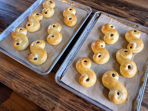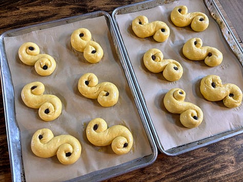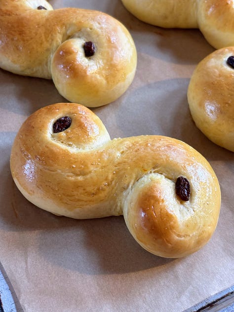 I woke early on Saturday to make coffee and start some lussekatter — saffron buns traditionally made on St. Lucy’s feast day. It was dark outside as I warmed some milk to steep the saffron threads. It was my second time making this Swedish treat — the first time being the December before we moved out to our land. My family has a lot of Scandinavian heritage on my dad’s side, and I always enjoy rediscovering ancestral traditions.