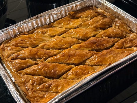 Last Sunday was the second Sunday of Advent as well as the feast day of St. Ambrose. We spent the afternoon decorating gingerbread cookies, which we had baked the night before. For dinner, we made homemade pizza, which was an old family favorite. We also made baklava as a nod to Ambrose’ association with beekeeping.