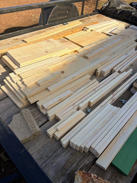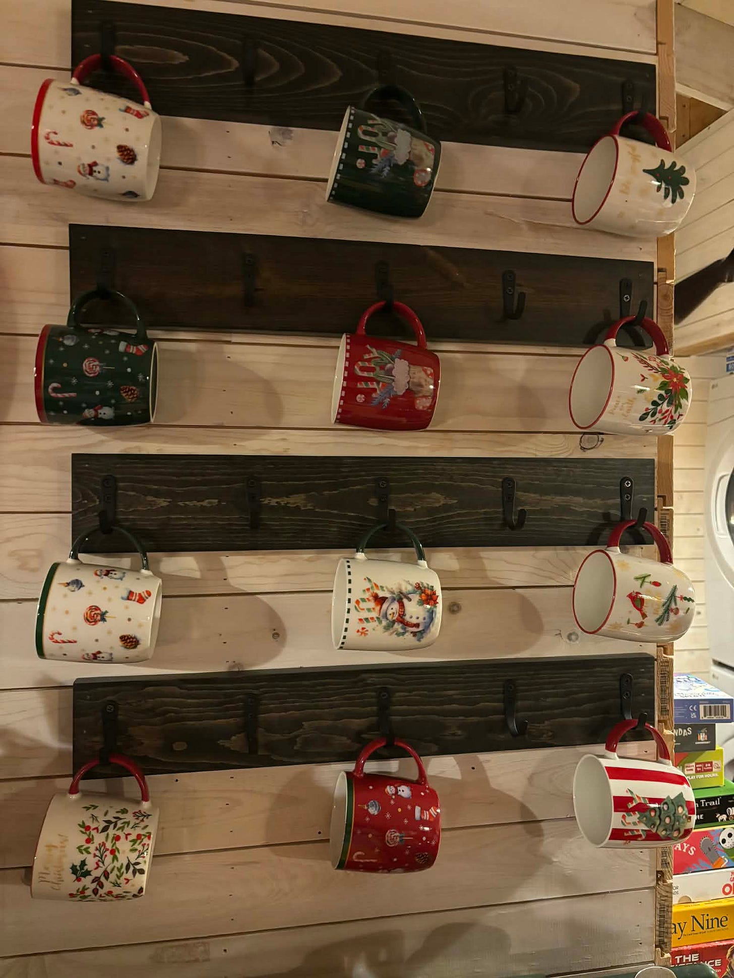 On Friday, our brother Levi picked up some screws for us in Springfield. We have been working on a coffee mug rack for a couple weeks. We had ordered cup hooks, but the screws that came with it were a bit long for the boards we were using. I assembled the rack with the new screws on Saturday, and we celebrated by getting out our new holiday mugs. I love how the cup rack turned out, and I know we are all going to enjoy all the shelf space it will save.