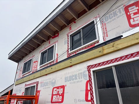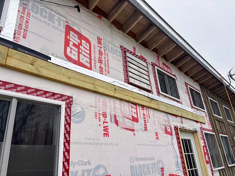 While I took care of the bees, Grace finished sanding our upper shelving for our kitchen. Dad installed flashing over the ledger board we have over our deck. Next year, we hope to cover a portion of the deck.