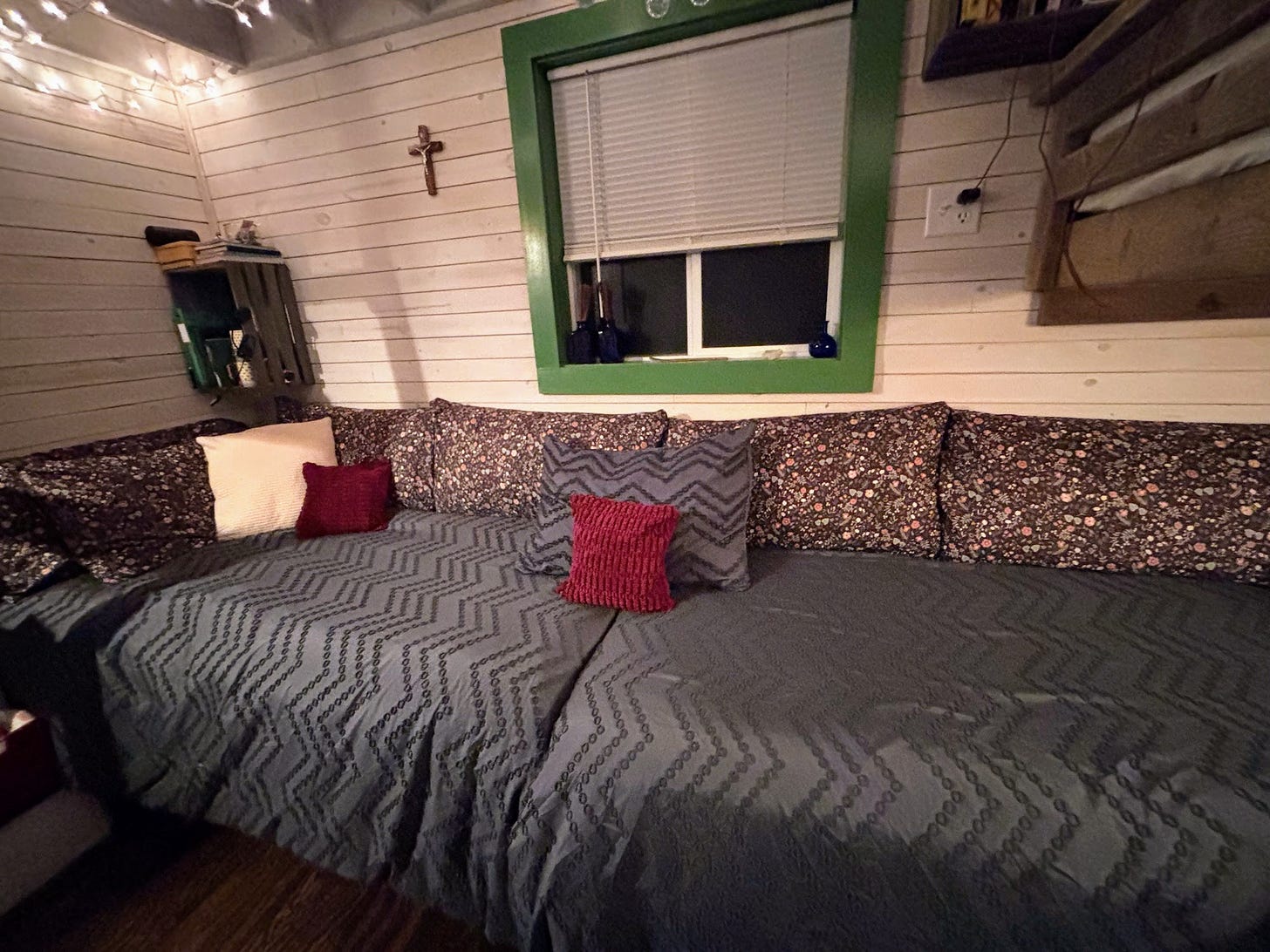 On another afternoon, Grace and I deep cleaned our bedroom. We had ordered new bedding, as well as some bolster pillows to turn the two floor-level twin beds into a large settee. This updated design gives us sisters a sitting room as well as sleeping space. We look forward to many cozy winter hours in our little room.