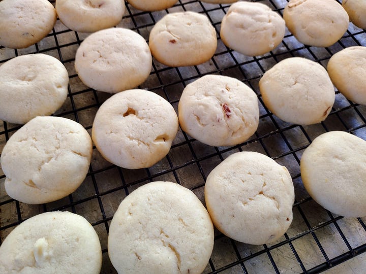On Sunday, those of us still free of the germ went to church in the morning. In the afternoon, we did a little festive baking. Since it was the feast day of St. John of the Cross, we made a few Spanish treats. We tried sopa de ajo (Spanish garlic soup). I have to say, the texture of the egg and stewed bread didn’t endear this soup to us. The flavor was nice though. We also made some Spanish shortbread — mantecados. These were delicious.