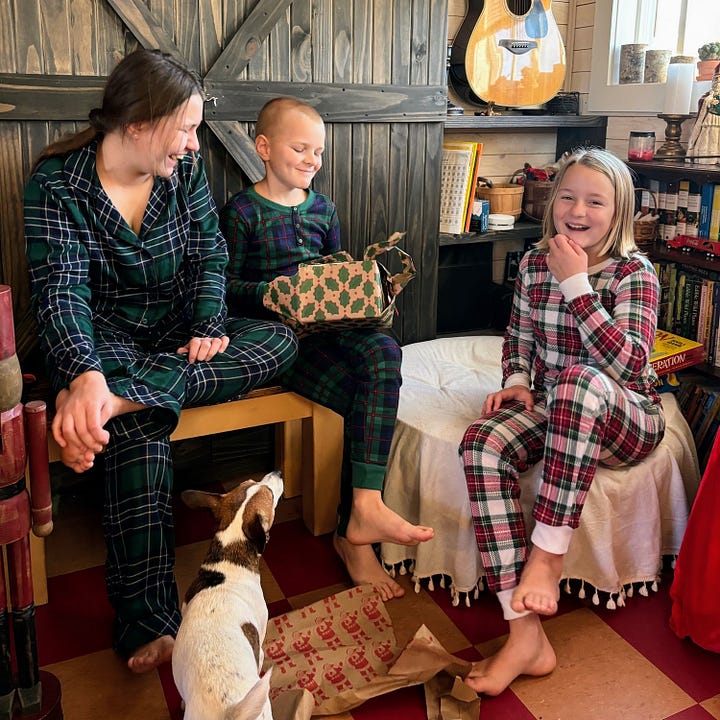 The first day of Christmas dawned especially magical, as “Santa” had made a surprise appearance in the night. He had already brought Christmas pajamas for the kids on Saint Nicholas’ Day, so imagine my surprise when I woke up to see he had brought something for everyone in the house. I’m rarely surprised on Christmas, but that extra stack of presents quite took me aback. Santa hasn’t brought me anything in quite a number of years. It was a small mystery that brought back a bit of the childhood magic.