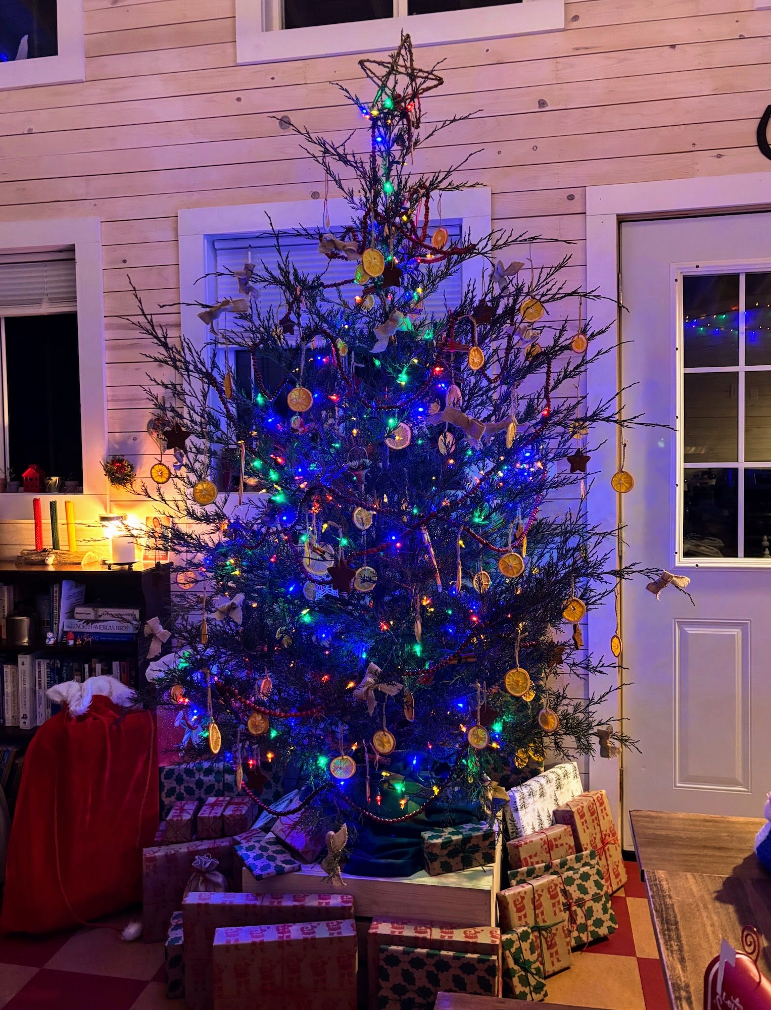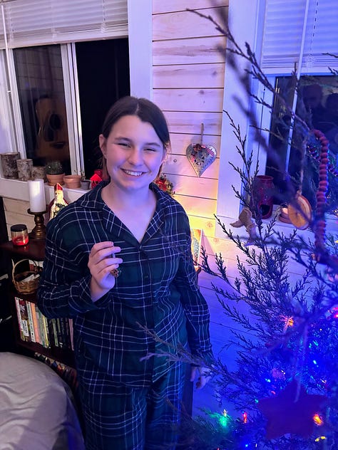 After mass, we decorated our Christmas tree. We had harvested a little cedar from our property earlier in the day. It turned out so cute — and it feels so special coming from our homestead. I can’t imagine using a store-bought tree ever again.